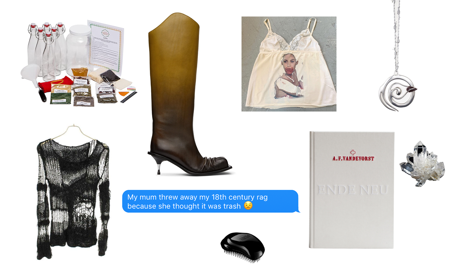 It’s been a lucrative year for your Swampcore GF. Since her Instagram archive store took off in the first half of the pandemic, not a single niche, untreated goat felt piece in her Depop likes has gone unpurchased, and she’s far too well-researched to appreciate anything other than a ZenMarket haul. So, we recommend starting small, perhaps with a tangle teaser, so she can turn fewer heads at the regional family Christmas table with her tendrilous locks. If you get lucky, there is also the chance of copping a skimpy singlet printed with a scene from Jennifer’s Body, in one of @stomachofyourdeadsoulmates’ lusted-after drops. Your swampy girl loves to support young designers, and top of her list is a pair of Fidan Novruzova’s impeccably-imperfect square toed boots, followed by a Rosie Grace Ward Worm necklace – the perfect addition to her plethora of distressed yarn ensembles. A kombucha starter kit could provide the perfect opportunity for your Swampcore hotty to rebuild her relationship with her father, which has been rocky ever since she maxed out his credit card buying equally rocky crystals at She’s Lost Control. Just picture the scene: two generations bonding over fungal fermentation and dad’s sourdough starter kit. ‘Tis the season to be yeasty.