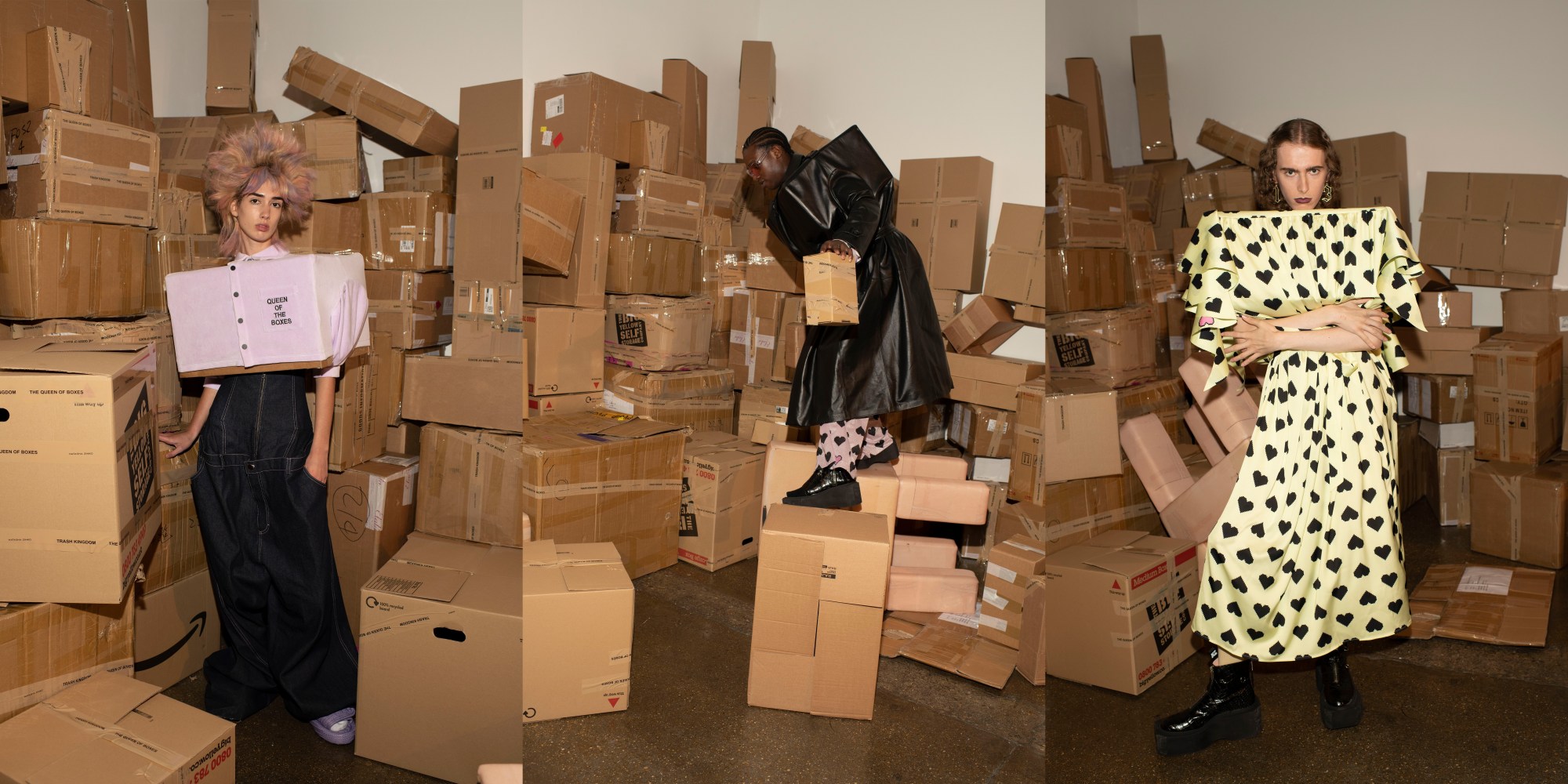 Three models wearing full looks by Natasha Zinko