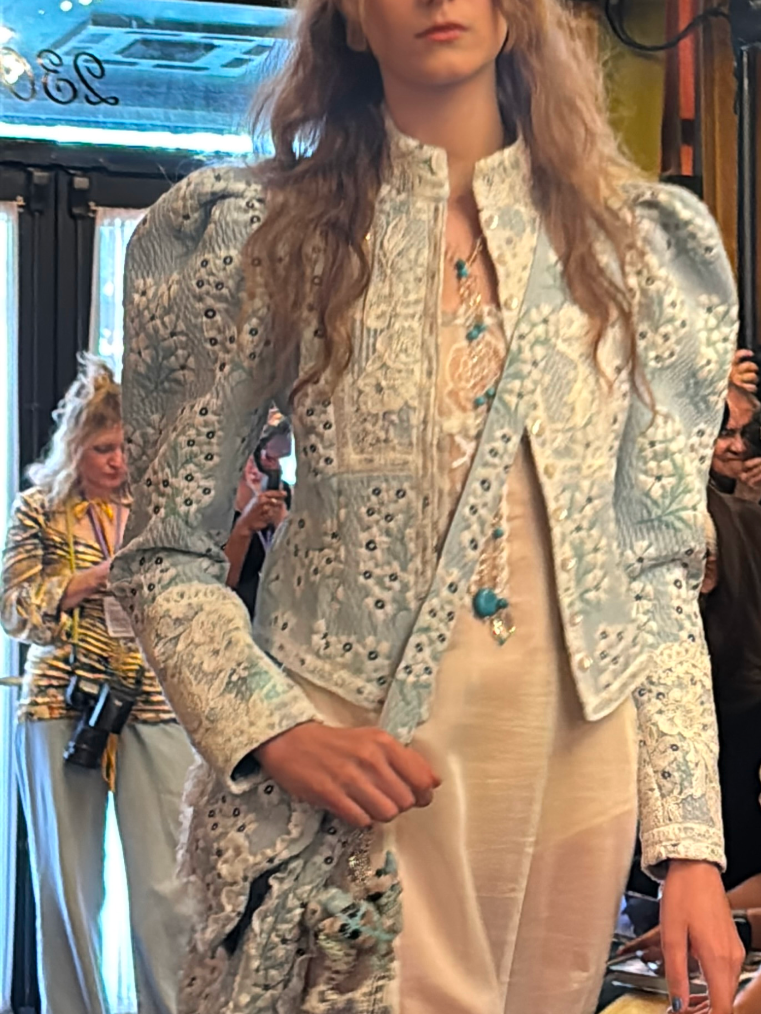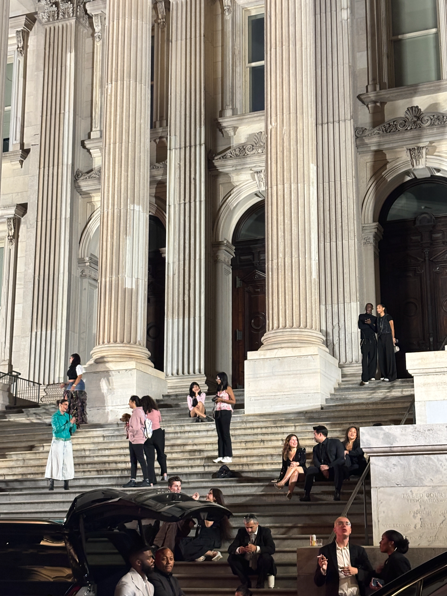 My first event of the day is the Anna Sui show, which she’s holding at the iconic Chelsea Hotel. Anna is a staple of Girl World and I’m lucky enough to be attending the show wearing pieces from her Fall Winter 2025 collection (a particularly exciting moment for a newbie like me). As I’m walking up to the hotel, the cameras are flashing and I’m reminding myself in my head that I actually am supposed to be here. I do my best to contain myself as I walk through the doors to see a copy of Anna’s new book, “The Nineties,” on each seat. I make notes of the soundtrack as I’m currently in the process of curating my music for the season.