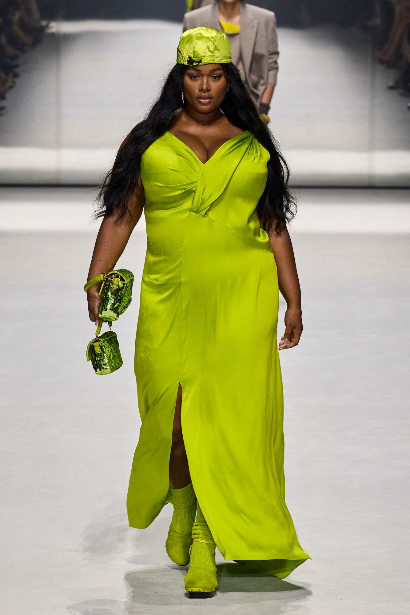 It seamlessly meshed with the family spirit so innate to Fendi – especially when the two designers walked out together after the show alongside Silvia and Delfina Delettrez Fendi (who is responsible for the jewellery), before being joined by Linda. “In the 90s, Linda was the leader of the pack,” Kim said. “And when I read about the pain she’d been in, I wrote her a letter because I don’t believe that people are disposable. In the end, I got the magical moment of seeing her being shot by Steven Meisel for the campaign. It was like a childhood dream come true.”