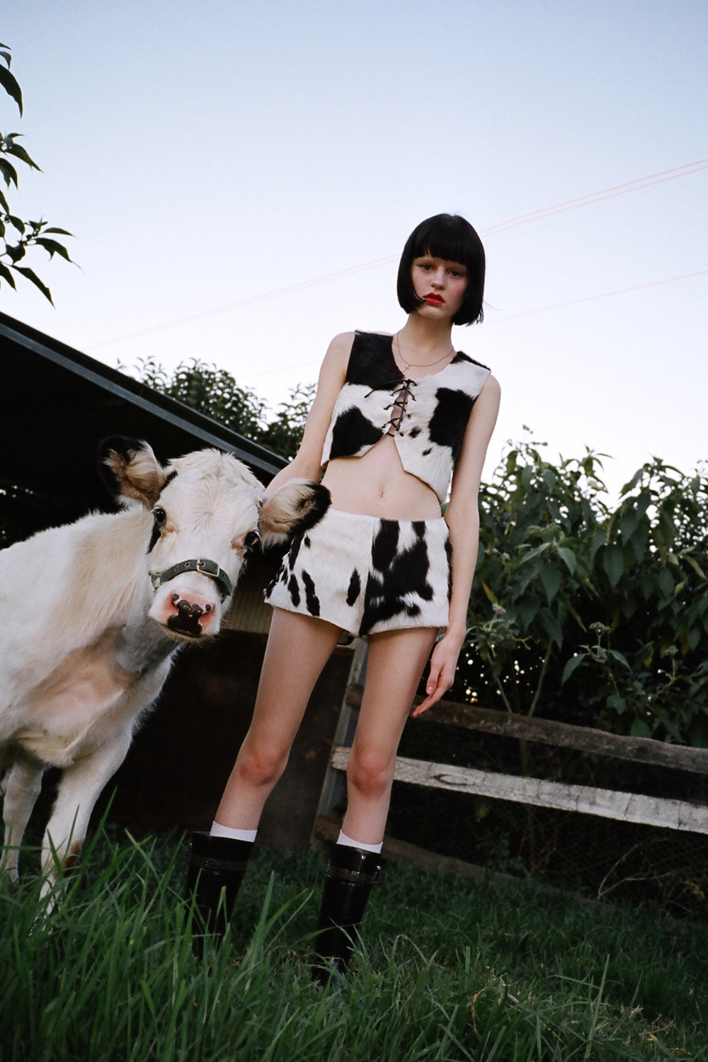 As well as working on their innovative platform FEELTHEFUTURE, the duo have just launched a new ready-to-wear label, DAISY. The fashion house chose a farmhouse as the backdrop for their debut Pure Country collection. It’s “An ode to youth and girlhood,” with gingham, chambray, and cotton garments. Complete with ruffles and frills to has a fresh-faced Lolita feel; while cowhide, suede, patent leather, and python pieces with corset detailing come packing panache. We caught up with fashion’s favourite couple about their latest venture.