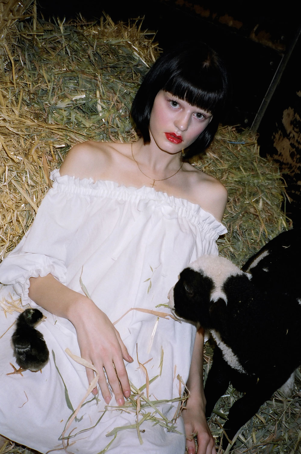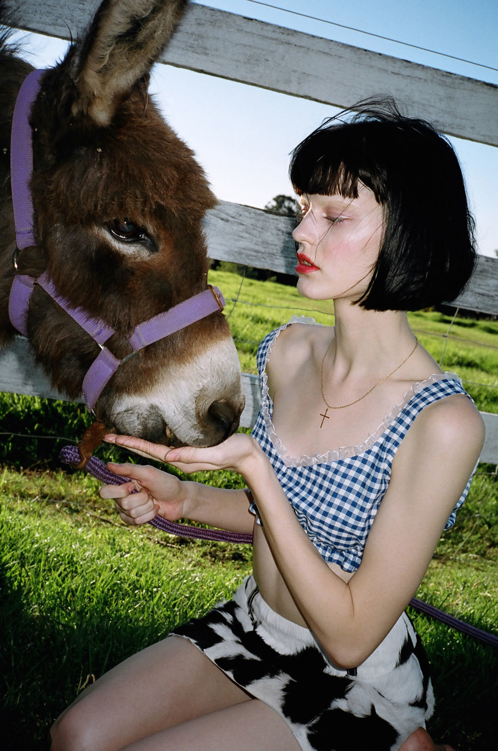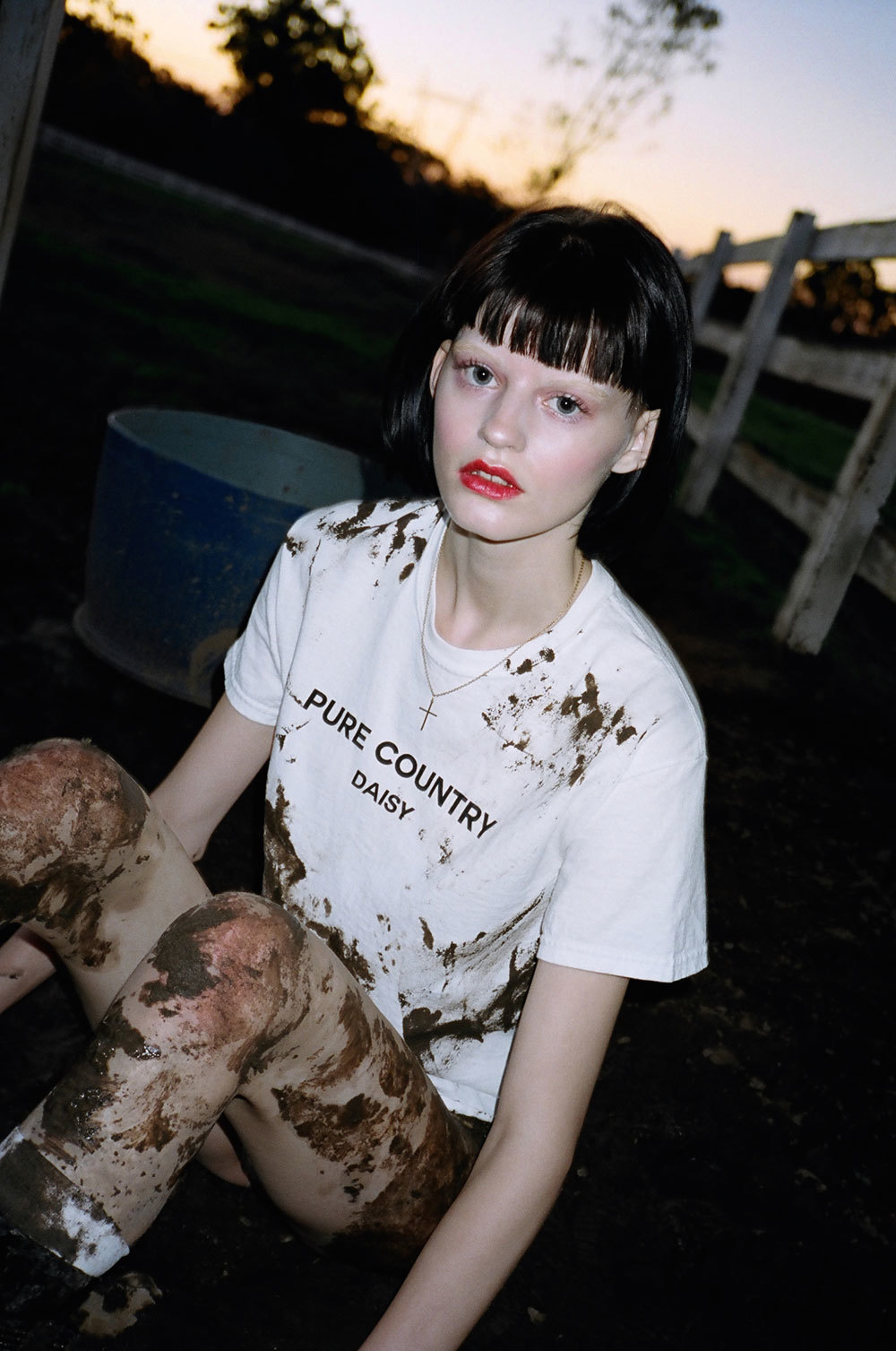 We shot at the most wonderful place. It was a baby animal farm in the country where they raise all sorts of barnyard babies. Ducklings, goats, ponies, and piglets. It was the most fun. With a name like Pure Country we knew it had to be somewhere with a strong sense of earth and sky.