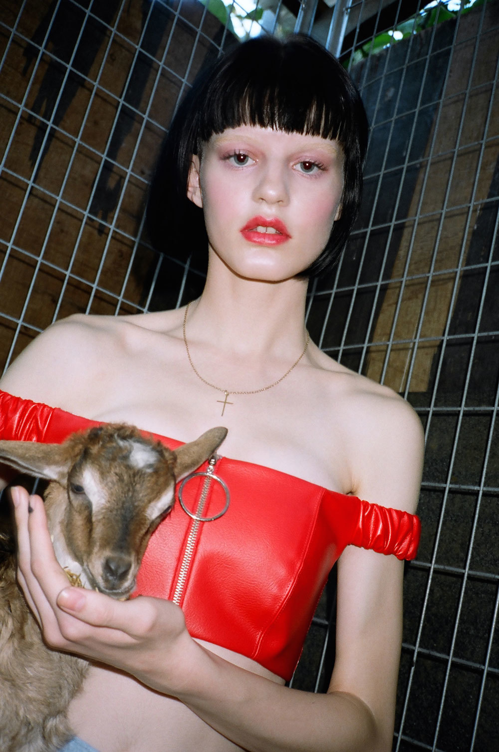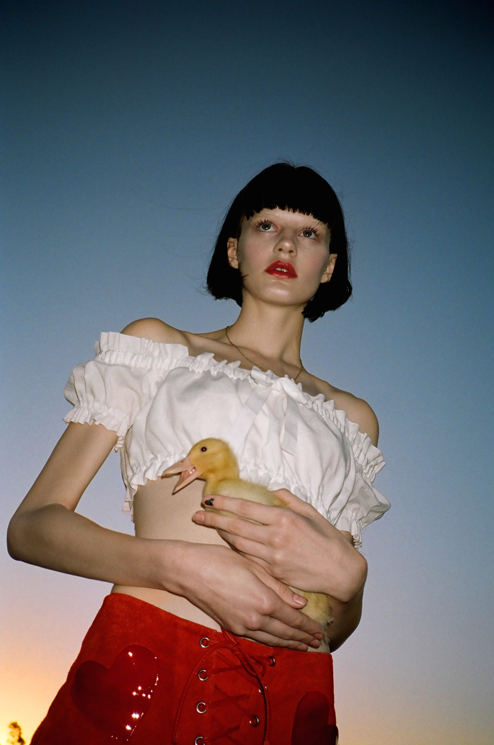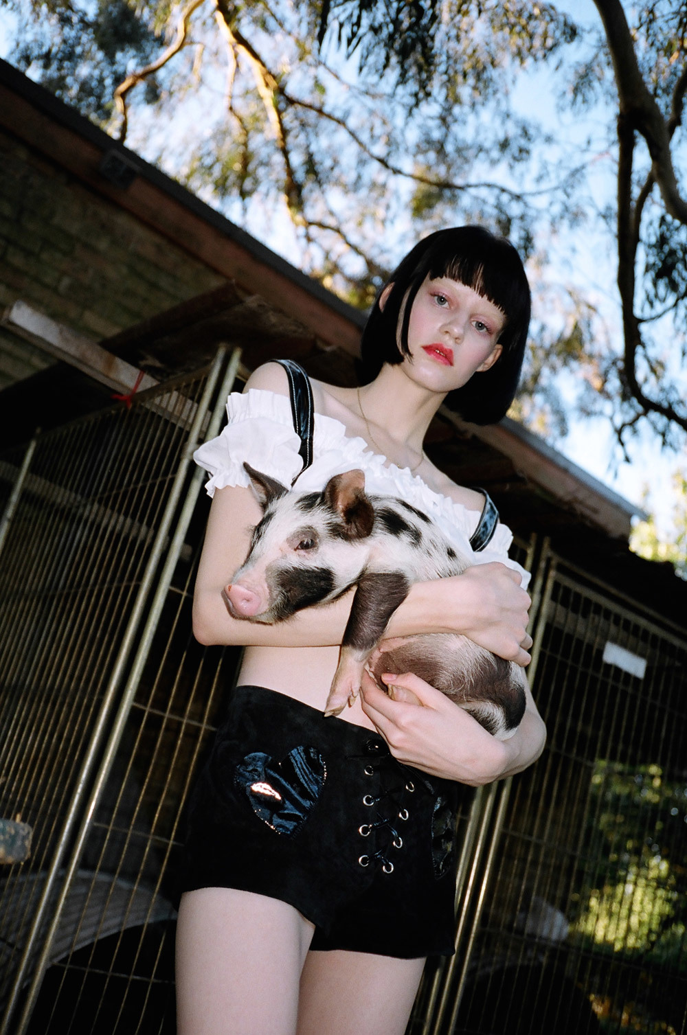 We shot at the most wonderful place. It was a baby animal farm in the country where they raise all sorts of barnyard babies. Ducklings, goats, ponies, and piglets. It was the most fun. With a name like Pure Country we knew it had to be somewhere with a strong sense of earth and sky.