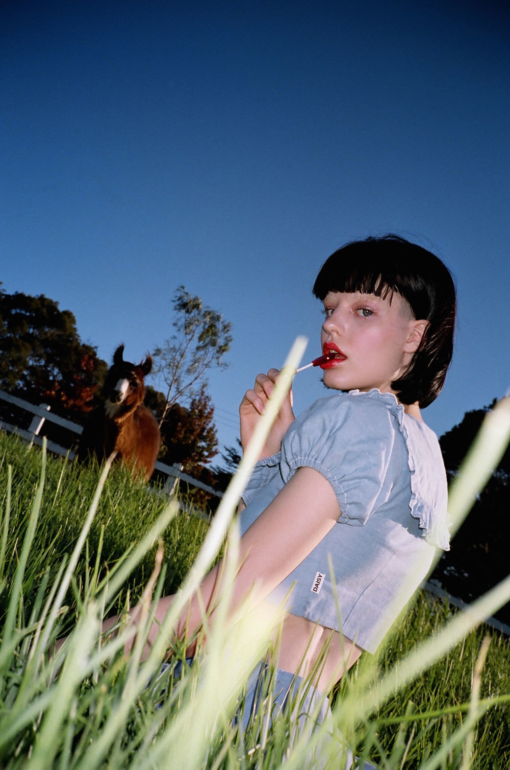 I think it’s cool to imagine the clothes out of context, in an office or like, taking meetings in the boardroom. Balancing the open outdoor fantasy aesthetic with the reality of life. I like to think of girls in gingham sundresses laying on their beds poring over a laptop sending emails at 1AM.
