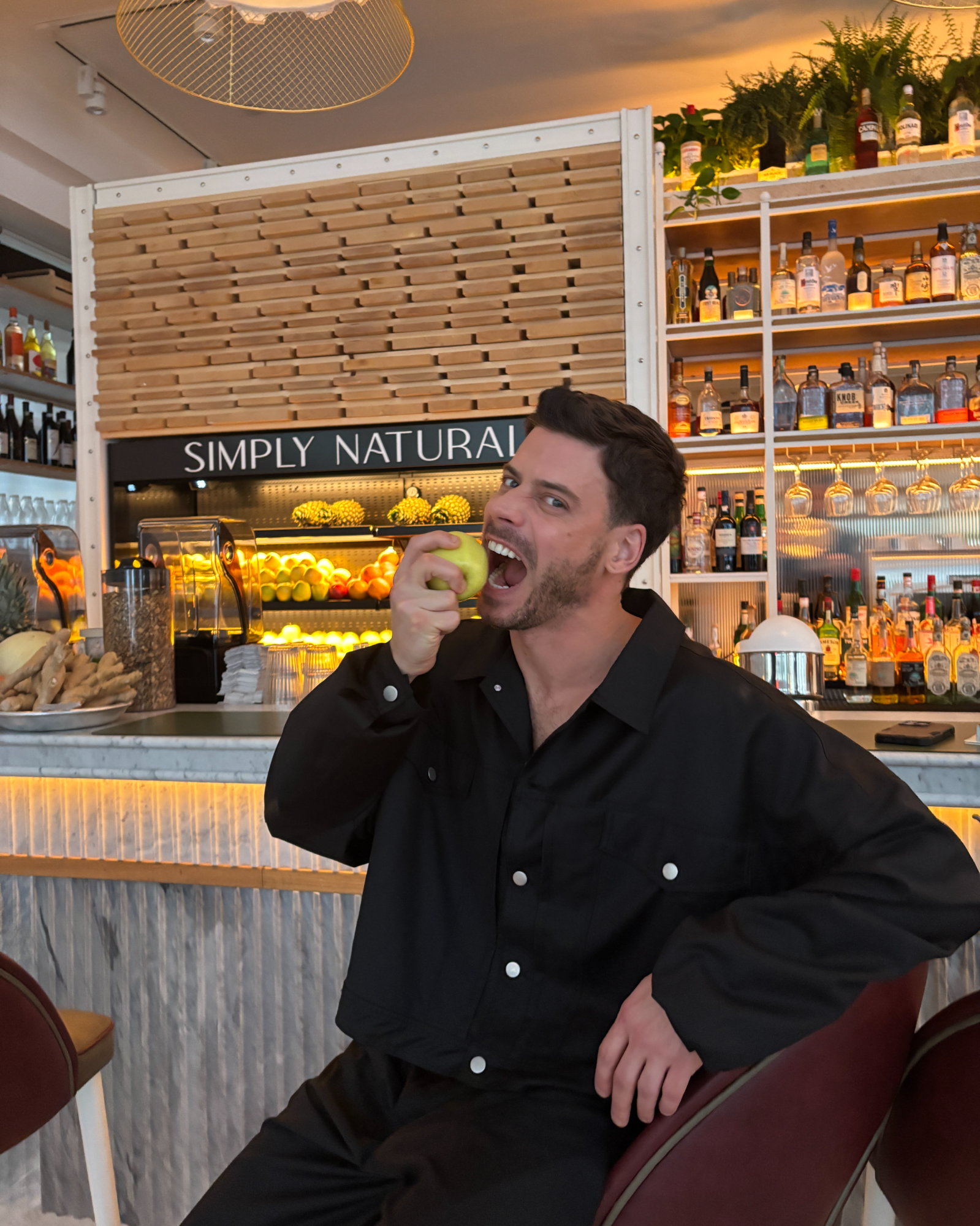 Weird and healthy. I don’t love a smoothie so I get all the greens and the protein, then I go and have a burger.