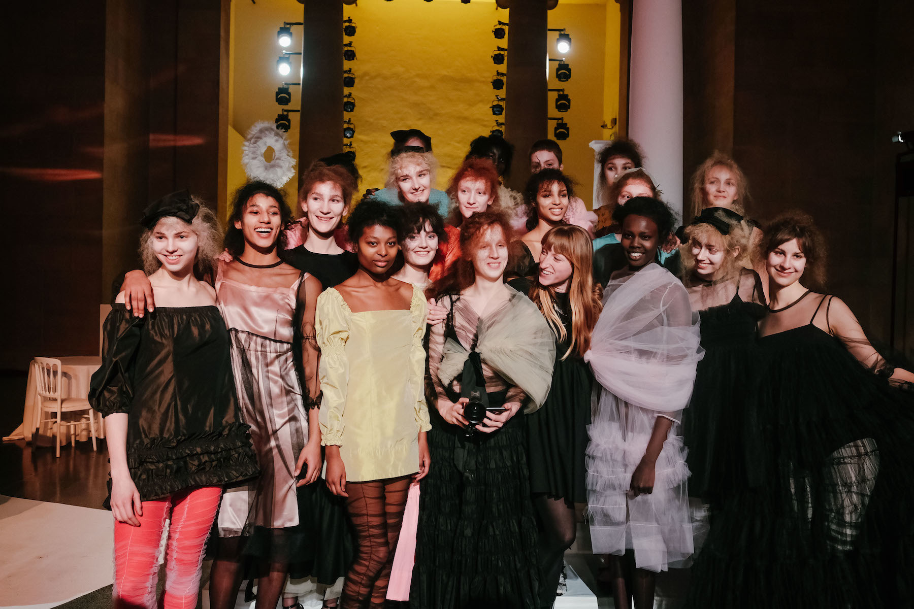 Molly Goddard’s showing at London Fashion Week in February was a flurry of luscious blush, umber and orange fabric that had our eyes captured and our hearts bursting. With echoes of Dario G’s Sunchyme still ringing around in our minds and shapes thrown by the models joyously dancing in the Tate Britain, we are delightfully reminded of the force of Molly Goddard in a new brand film to celebrate her autumn/winter collection hitting Dover Street Market this Saturday. Filmed in the hours leading up to the show by creatives and close friends of the brand Tegen Williams and Raf Fellner, the five-minute short displays the love, sweat and tears that goes into making the Molly Goddard machine run and the loved ones who helped the presentation come to life. We asked Molly herself what some of the thinking behind video was as well as where the inspiration for the collection came from and you can watch it exclusively on i-D below!