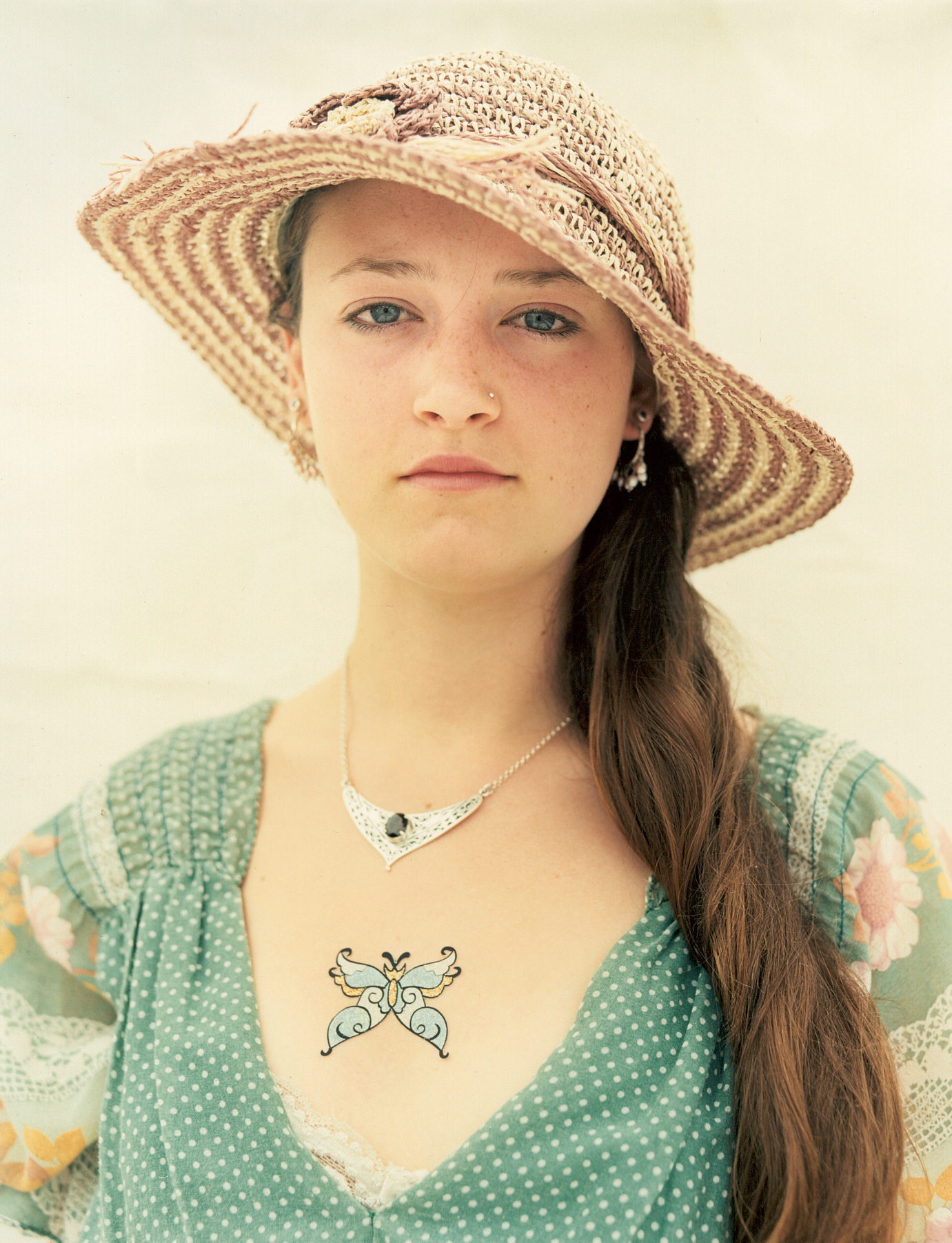 “15-year-old Gabreille is sporting a wide brimmed hat to keep off the winking Glastonbury sun, with a gorgeous vintage dress underneath. Gabrielle is currently a home school student and thinks the best thing about the festival is “obviously the music”. She is here with friends, whom she describes as “alternative, amazing and all completely different”.”