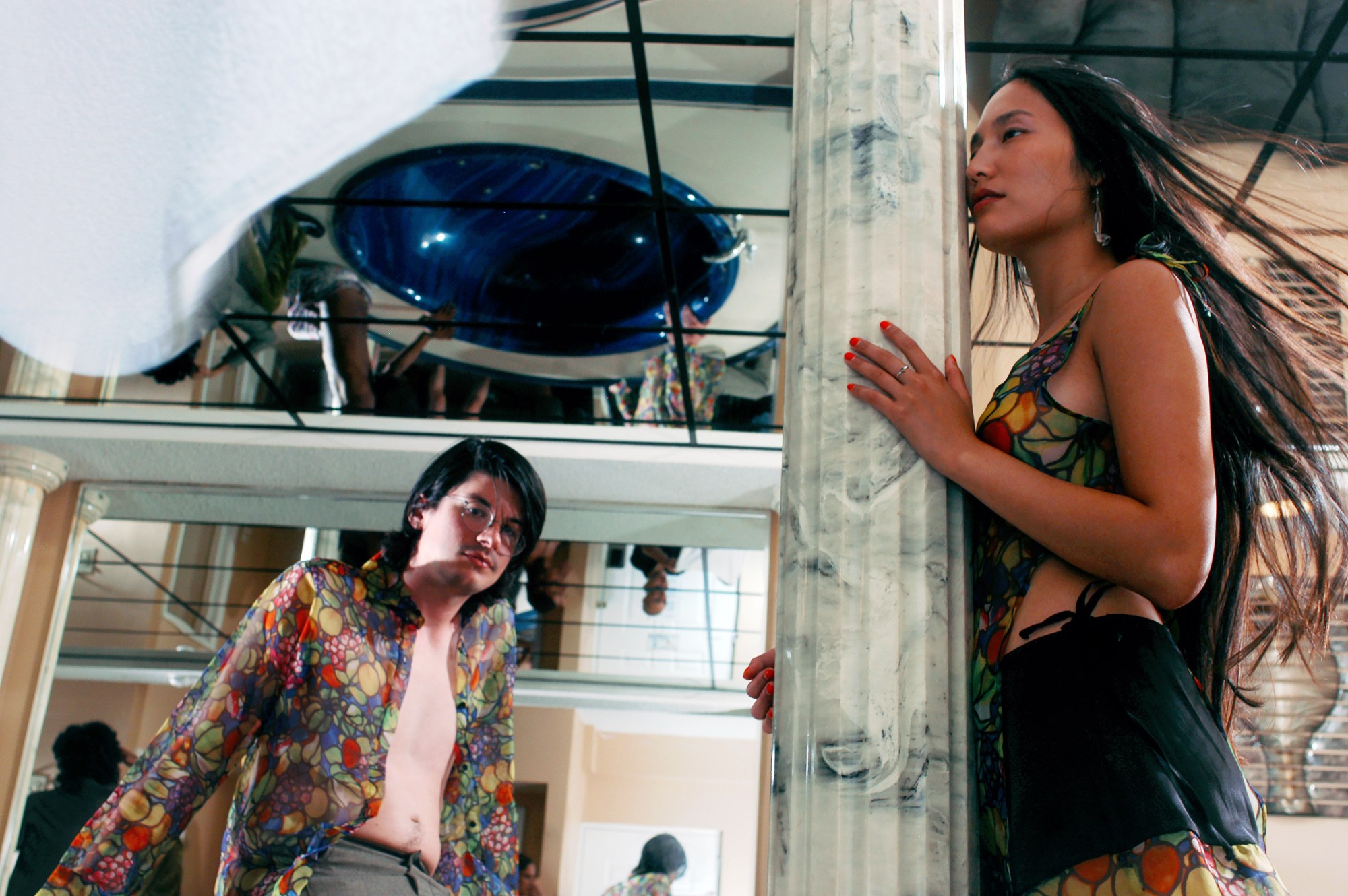 After Esther Gauntlett and Jenny Cheng sent their fall/winter 18 collection down the runway with furry pets in tow, they wanted to take it in an entirely different direction — hightailing it to a New Jersey love motel — for the accompanying campaign. Model friends snuck from room to room, lounged inside a gigantic champagne flute, and slunk about in mirrored rooms in what began as the strangest slumber party of their lives. You can see the images in the windows of the brand’s new showroom at ON CANAL, at 357 Canal Street, starting September 12. It’s a space which they plan to share with longtime collaborators, local artists, and likeminded designers. i-D talked to Esther and Jenny about the perils of love motels, working with their creative collaborators, and why their pets wear scarves.