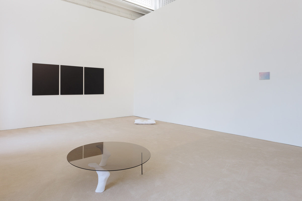 That work came about from a story you told me! That they used to lubricate peoples’ movements by having talc on the floor and for a while I’ve been wanting to make a floor work. I’d been using all these hygienic clean tiles and I wanted to find a way to dirty them up. And rather than have something on the surface, I liked the idea of something under the surface. So I used the talc to create patternation on the floor, then put acrylic on top, so it becomes like dirt trapped under your fingernails. You can walk on it, but the talc won’t move. I like these immediate ways of pressing something, or fixing it in place.