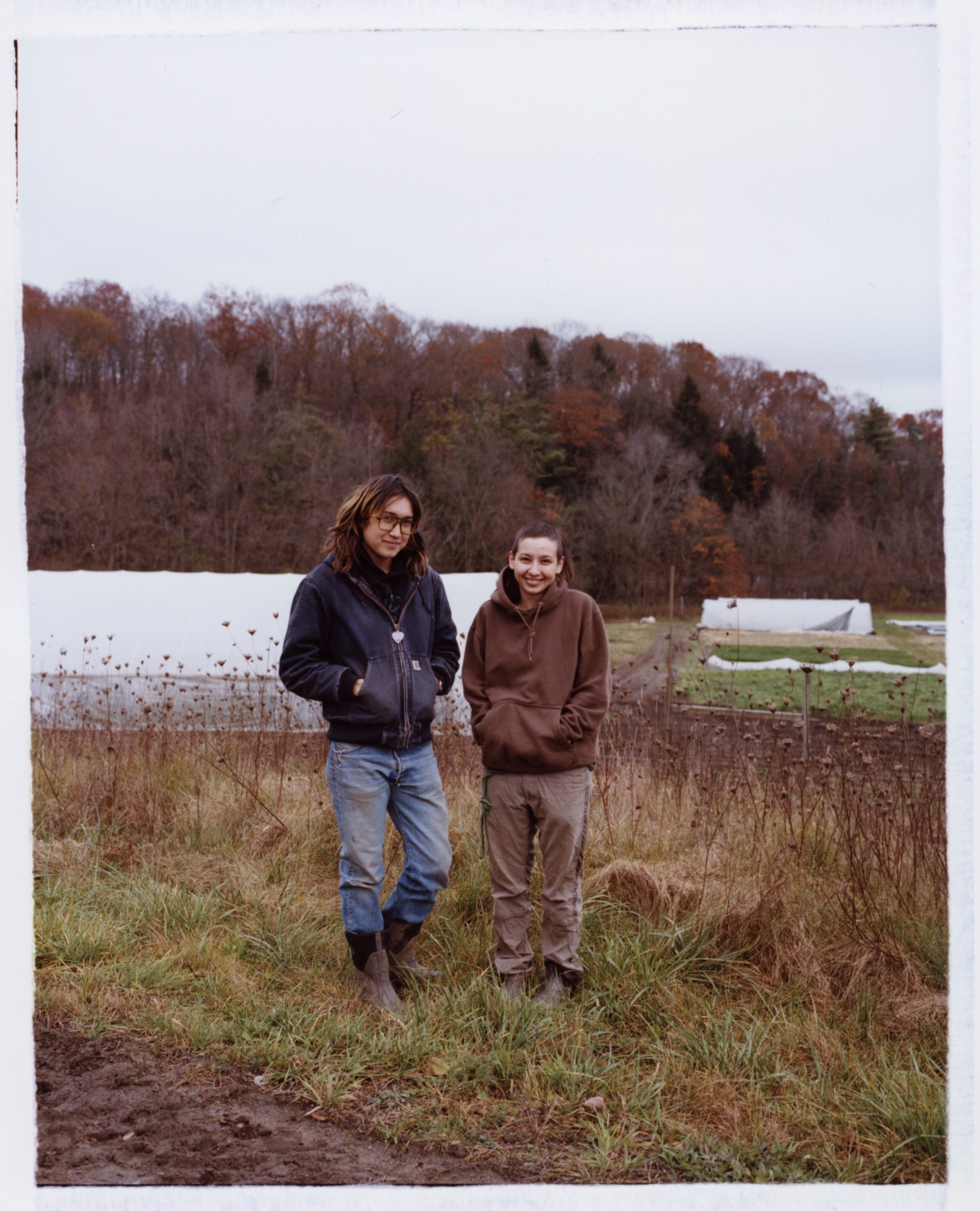 It’s a brisk November morning at Gentle Time Farm, and the growing season is coming to a rest. “We’ve put pretty much everything to bed,” says 28-year-old Kaija Xiao, pointing across the two-acre field in Chatham, New York. Long billowing tarps are held down by cinder blocks to protect the soil during the dormant months. In 2022, Xiao and partner Salt Wang founded Gentle Time as a trans and queer cooperatively-run farm that puts care for the land and people at its core. Resting the soil is a timely reminder for the farmers to slow down, too. “There’s so much to do and so many things to care about,” says 27-year-old Wang. “It’s hard to remember to care about yourself first so you can continue.”