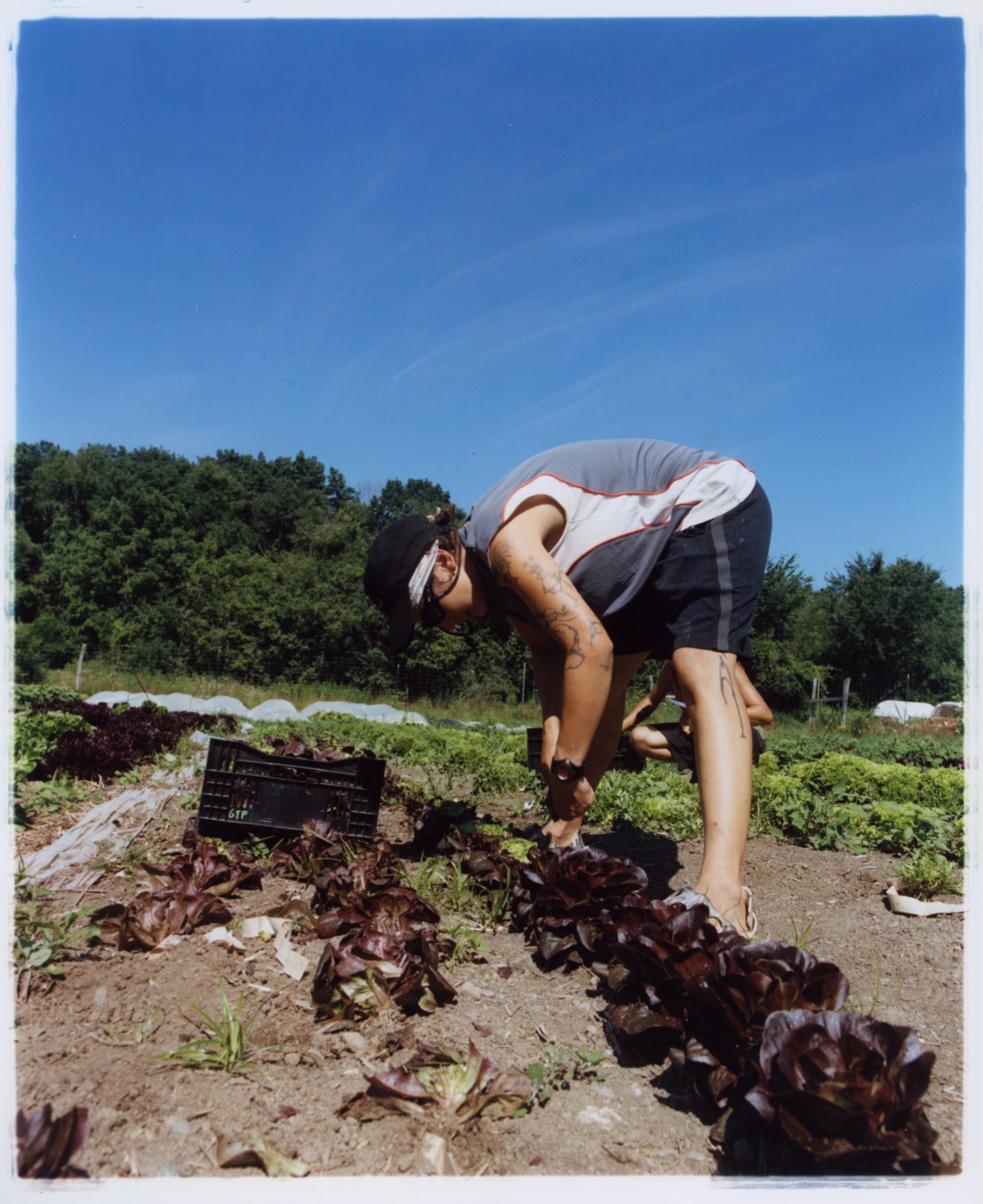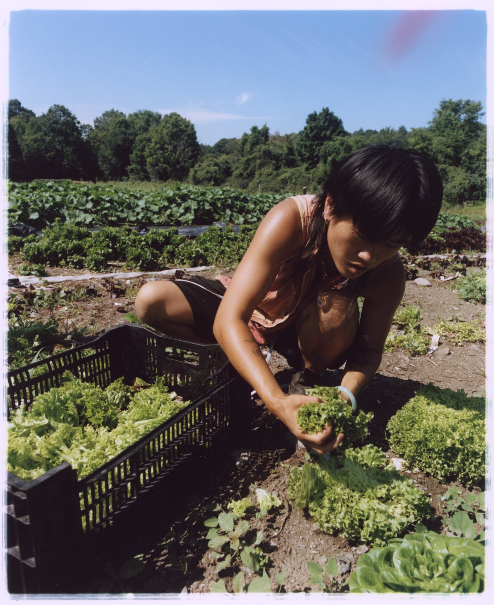 Choy Commons is building their own distribution chain to strengthen the link from their farms to mutual aid groups, community supported agriculture (CSA) programs and local restaurants across New York. Together, the farms have been able feed hundreds of families each week, a testament to their meticulous crop planning, troubleshooting, and hard manual labor. It’s a rigorous schedule, but the young farmers find levity in their day-to-day work by singing to curly bundles of garlic scapes, stimming on the broadfork (a tool that aerates soil) and, on occasion, meowing in a field of carrots.