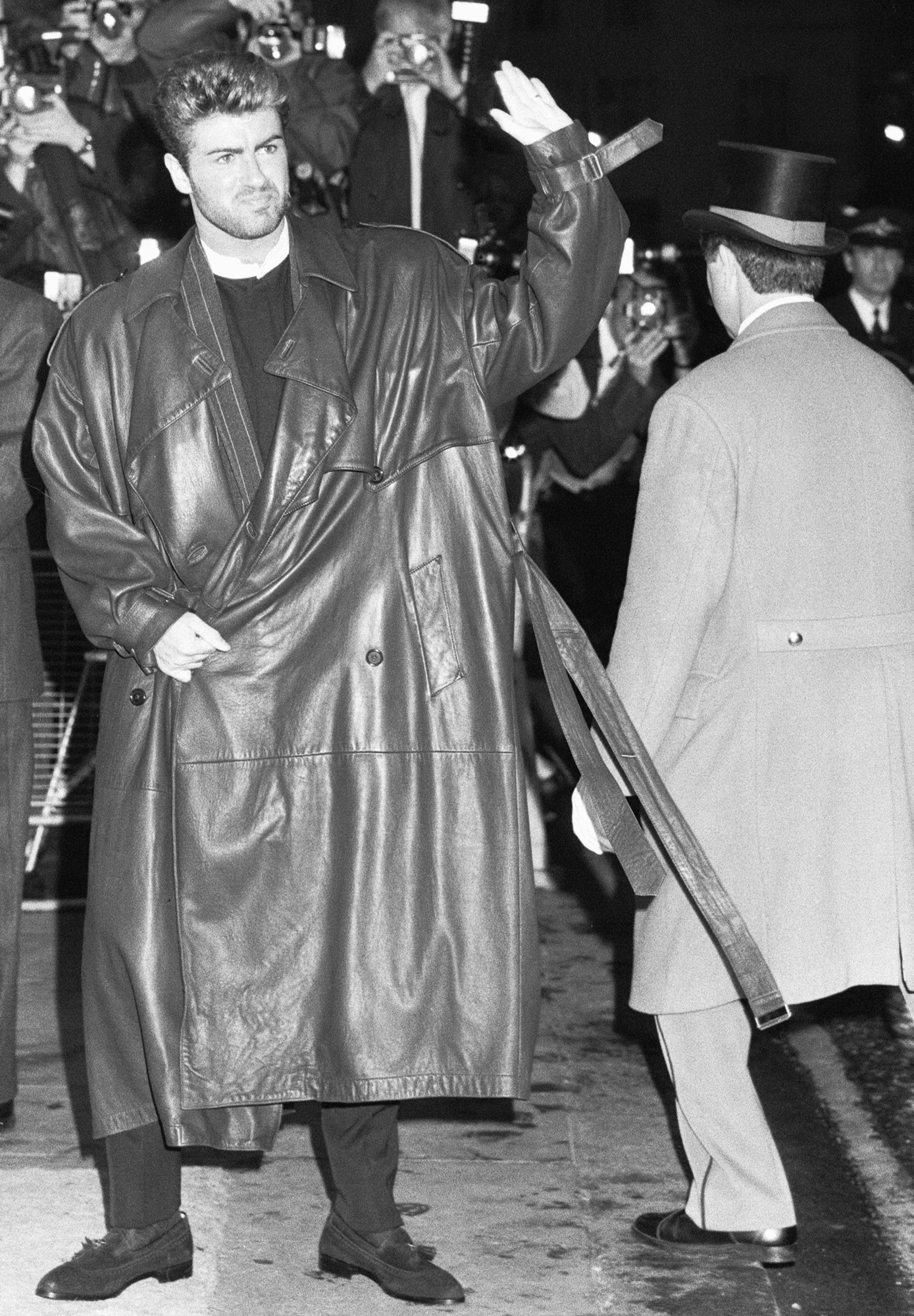 Move over David Byrne, turns out there’s another 80s legend who loves absurdly oversized outerwear just as much as you. Here, George Michael arrives at the launch party for his debut solo album, Faith, wearing a massive, massive leather trench. Chic!