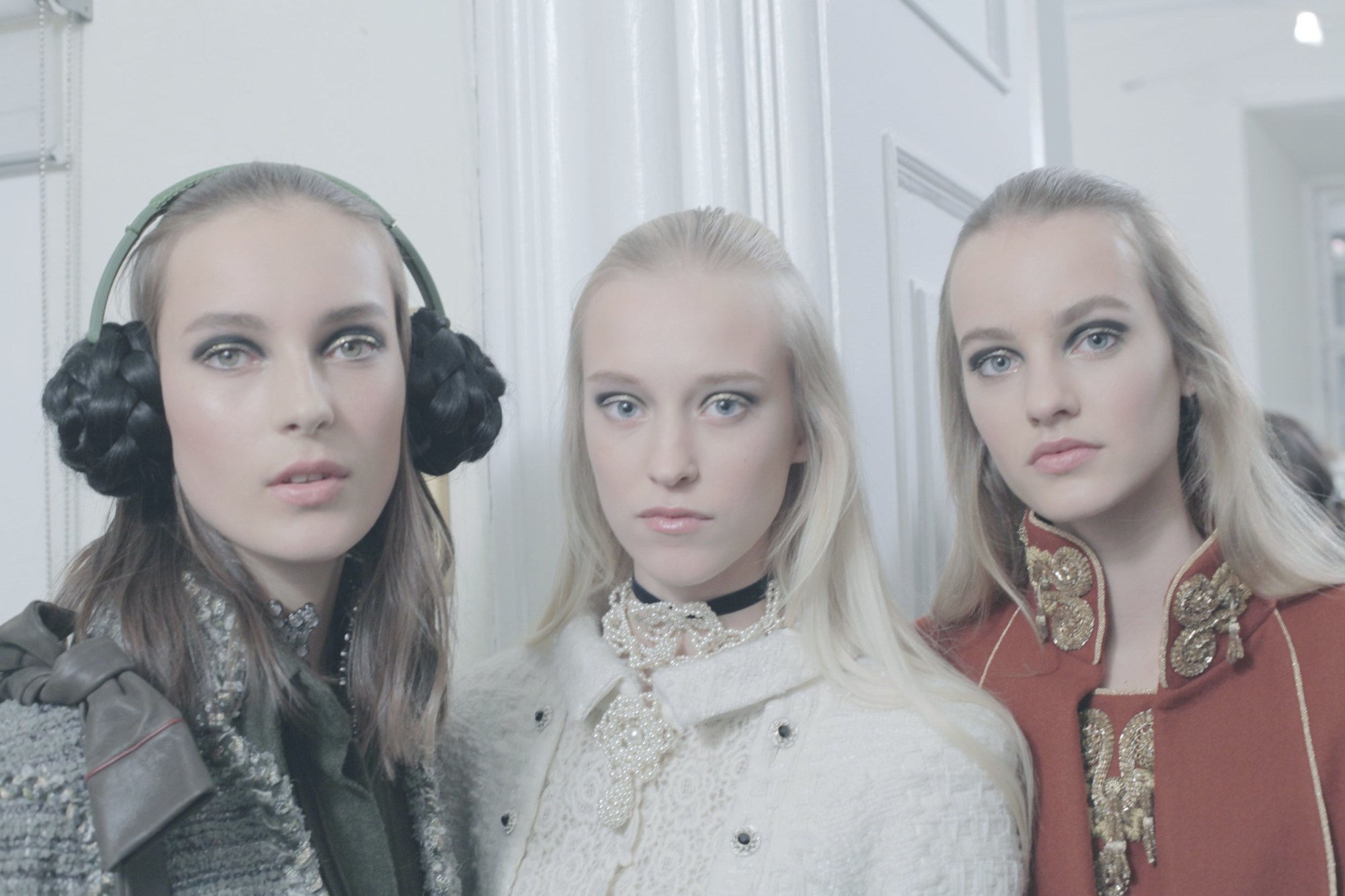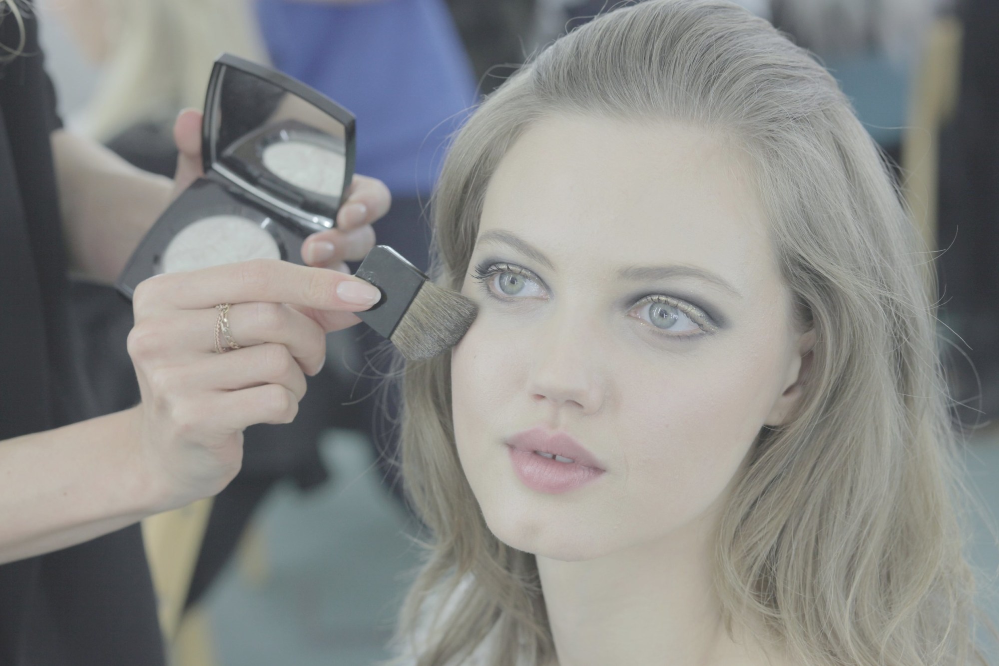 This Tuesday saw Cara Delevingne, Kendall Jenner, Edie Campbell and co stalk the hallways of the stunning Schloss Leopoldskron in Salzburg for the Chanel Métiers d’Art. But while the show enchanted on the outside, we wandered the corridors backstage to find the people behind the beauty. Personally selected by Karl Lagerfeld, make-up artist Tom Pecheaux created the shimmering gold eyelids, deep sockets and fresh skin of the models, while Sam McKnight was on hair duty as usual, making it slicked back and neat on top, loose and pretty at the ends.