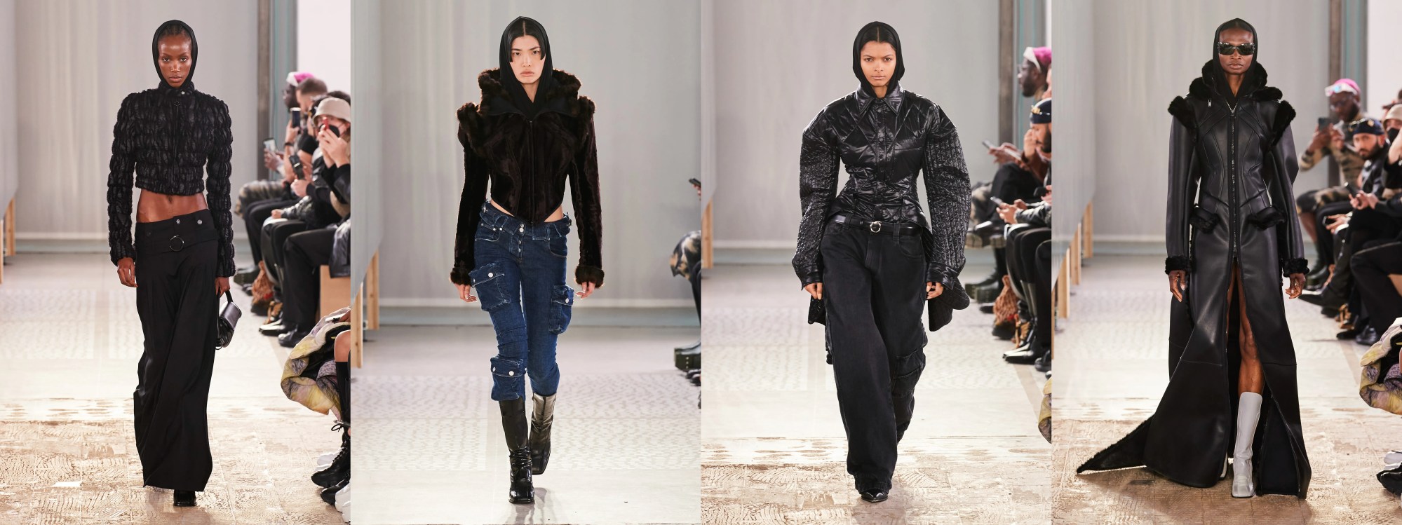 Looking at the mythology of fairytales led them to thinking about the fables of Italian fashion itself. What was interesting about their collection was that it riffed on perhaps one of the ugliest incarnations of Italian fashion: the puffer gilet, which Trussardi happens to sell a lot of. Rather than riff on the mythology of Italian style, they unpacked the reality of it with ruched iterations opening the show and tight puffer dresses quilted to resemble mediaeval armour — the renaissance undertones heightened by crinolined LBDs and faux-fur doublets elsewhere. Mixed into that throbbing soundtrack was ‘La Gatta Cenerentola’, a musical fable by Roberto De Simone in Neapolitan language— an adaptation of the original Italian seventeenth-century fairytale that would later become known as Cinderella. In it, laundry maids smack the floors to form the rhythmic beat to their wailing.