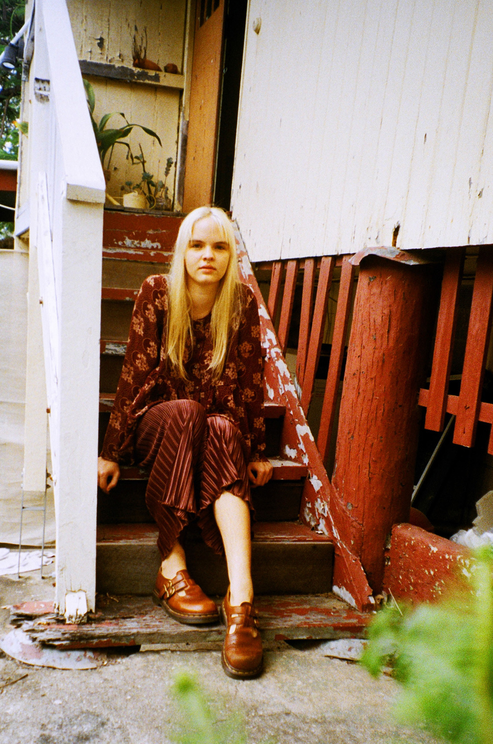 My friend’s dress and pants, old Doc Martens.