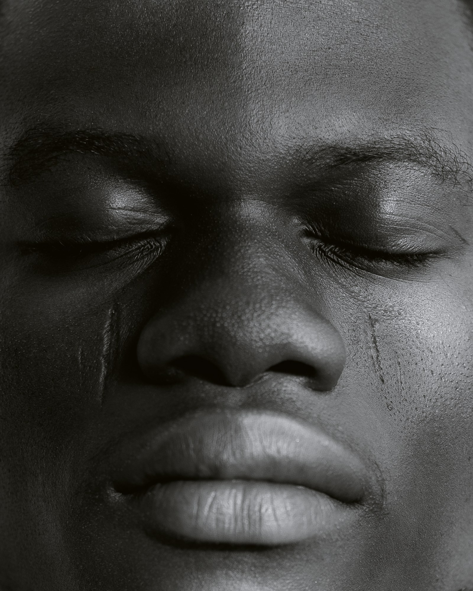 In Yoruba culture, facial markings have been used for centuries to mark a person’s tribal heritage. The practise involves cutting and burning the skin with sharp objects and then adding black paste, usually from ground charcoal dust, to the open marks.