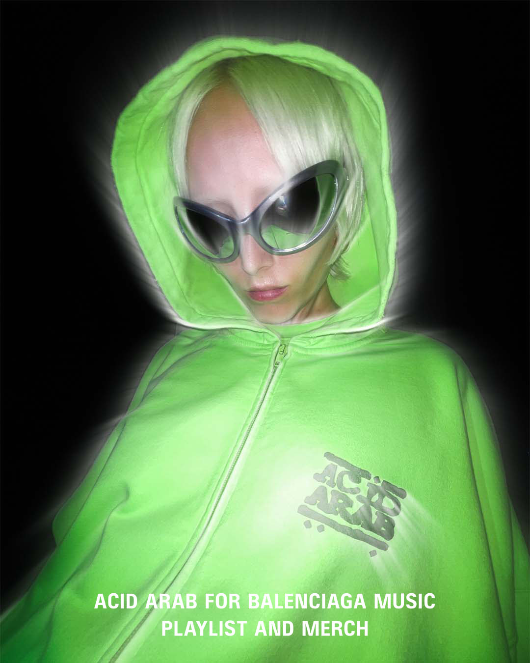 Granted, there are a couple of top contenders when it comes to the fashion house with the best music plugs, but a dead cert among them is Balenciaga. Whether it’s the new-wave and nosebleed-techno of the house’s shows scored by BFRND, or the exclusive Apple Music series that launched back in the early days of the panny-d, inviting everyone from Rammstein to RuPaul to Aya Nakamura to put together a playlist for the house, few fashion players are quite as well anchored in the music world as Demna and his gang. Well, if you’ve been hankering after a new entry in the series, your prayers were answered last week when Balenciaga released a brand new playlist compiled by French electro band du jour Acid Arab! Just as you’d expect from a duo who’s self-professed remit is ”to mix all kind of Eastern music (North Africa, Lebanon, Egypt, Turkey or… Mumbai) with electronic sounds, from pioneering acid house to today’s powerful techno”, it features tripped out beats and remixes rooted across the MENA region. It’s so damn good that you’ll probably want a piece of merch to commemorate the occasion of your first listen… well, your wish is Balenciaga’s command! To celebrate the release, the house has teamed up with Acid Arab on a appropriately acid-hued capsule of hoodies, sweatshirts and trackies. Cop yours here – quick! TG