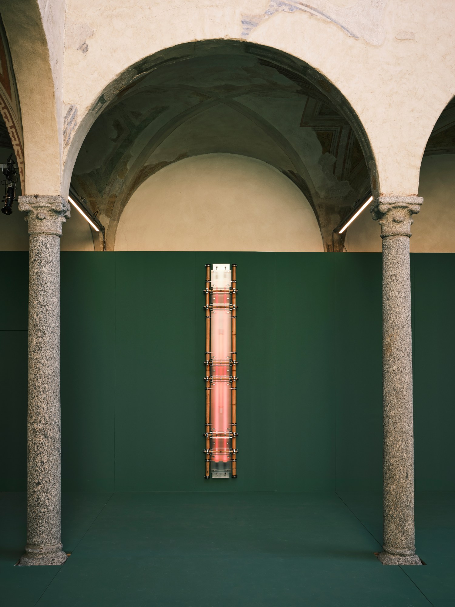 And then came the glow: the back studio, a Milan-Mumbai duo who paired bamboo with cold cathode neon. Their installation wrapped light around the material like a conversation—rooted in tradition, lit for the future. “Bamboo is the material,” they told me, “but it’s also the message. We’re rethinking how materials from the past can shape the future.” Basically: rethink the stick. Make it glow.