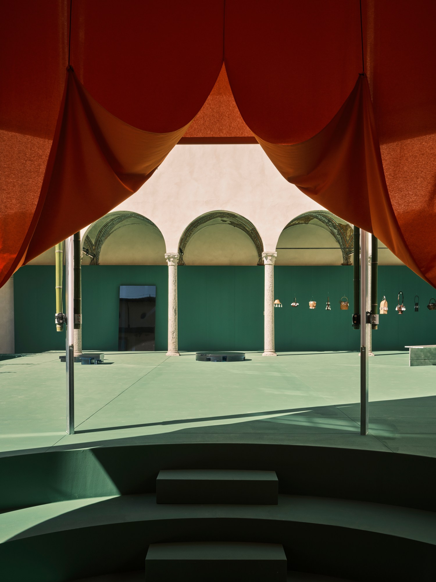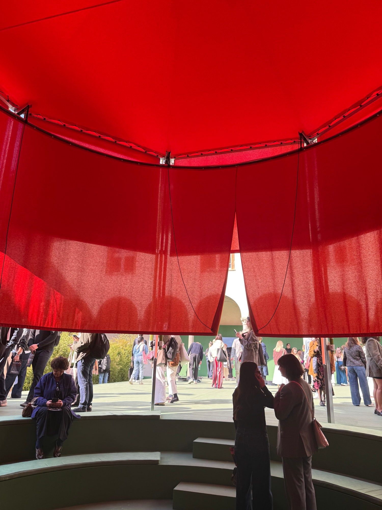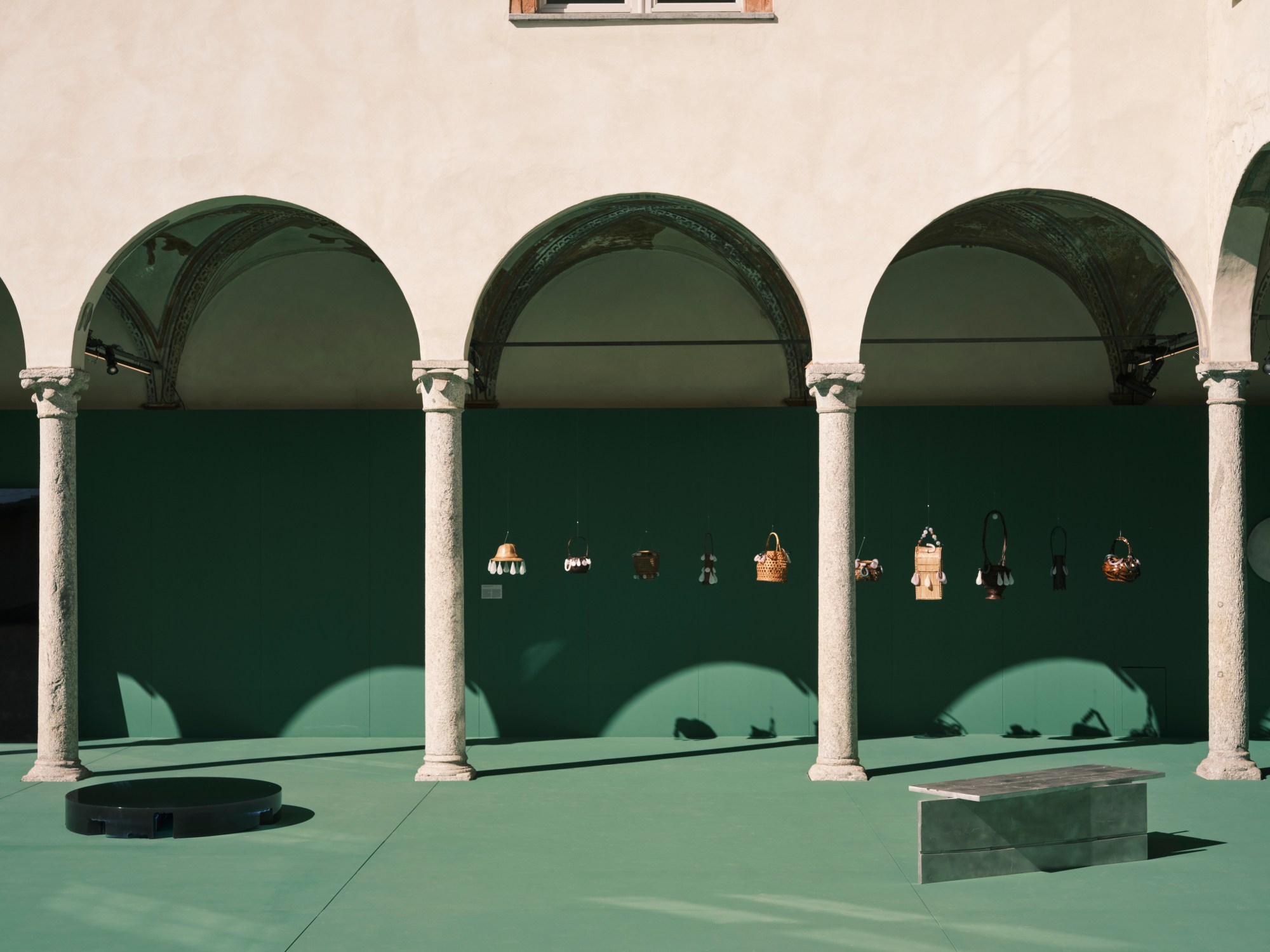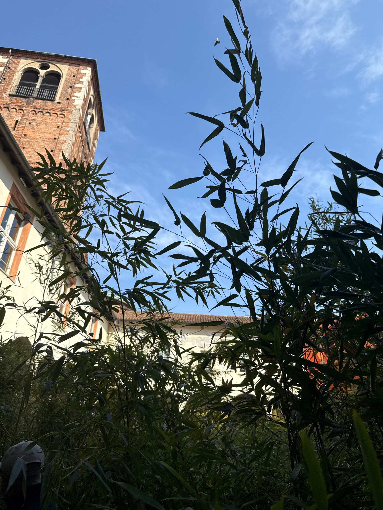 A short walk and a few buttery bites later, I arrived at the Chiostri di San Simpliciano, where Gucci’s Bamboo Encounters exhibition was unfolding with all the quiet drama of a Fellini dream sequence. Men in tuxedos were managing the queue like we were entering a gala at La Scala, not a cloister. It was sunny, surreal, and slightly ridiculous—which is to say: perfect.
