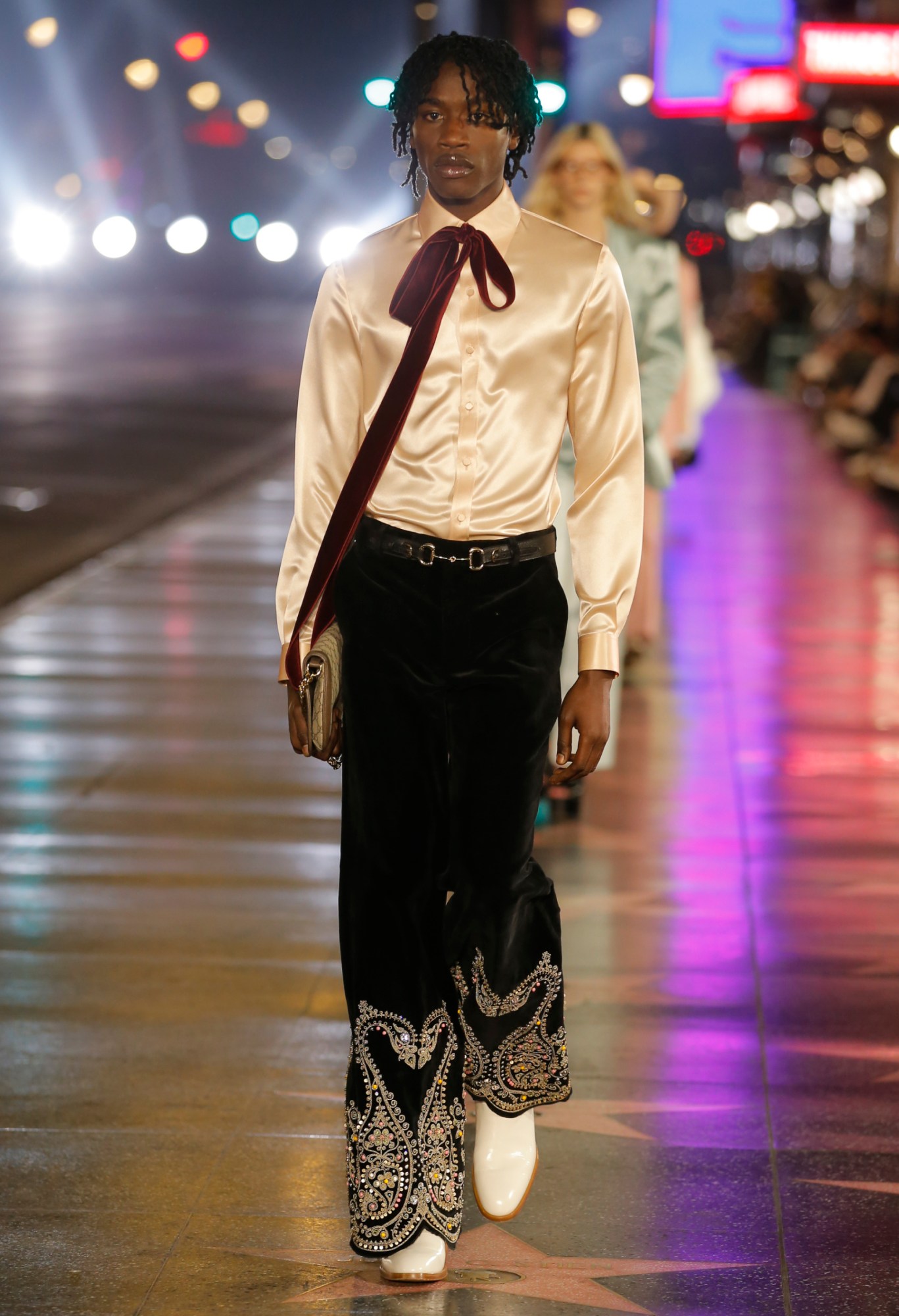 More than the famous faces that turned up, though, the greatest testament to the common ground between Hollywood and Gucci was in the spirit they share. For starters, there’s the theatricality of shutting down one of the most famous stretches of one of the world’s most famous streets to stage a fashion show. On a more fundamental level, it’s about a mutual commitment to romance, spectacle, magic and subversion.