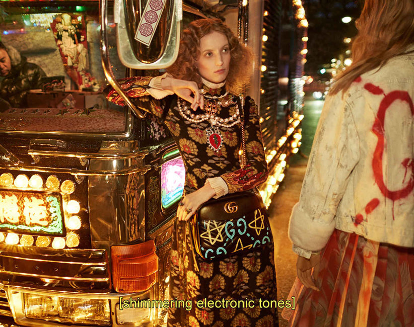 For their AW 16 campaign, Gucci have sent their gang of beautiful people on a road trip. Although, it’s a lot more glamorous that the cramped, energy-drink fuelled ones we’re used to. In the Glen Luchford film and accompanying images their pal Petra Collins is cast as the designated driver of your dreams. She slips behind the wheel of the glittering Gucci bus (swoon) to motor her pals around Tokyo. In tow are Sofia Friesen, Lia Pavlova, Polina Oganicheva, Mae Lapres, Jack Chambers, Christopher Paskowski, Joep Van de Sande and Yan Kumra. All hair, glasses and perfect jumbled layers they give the previous Berlin based Gucci gang some serious competition in the style stakes.