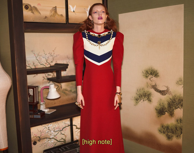 The brand apparently wanted to take things in a more natural direction this time around, in contrast to the hedonistic abandon of Berlin for spring/summer 2016. Of course “natural” to creative director Alessandro Michele means a chaotic night out in the most populated city on earth. The frenzied energy is undercut by the Black Marble’s 2012 doom synth track Pretender and the Karaoke style subtitles that offer bites like “I don’t believe in chance”. The result is a mix of joy, beauty, melancholy and love that would make Sofia Coppola proud.