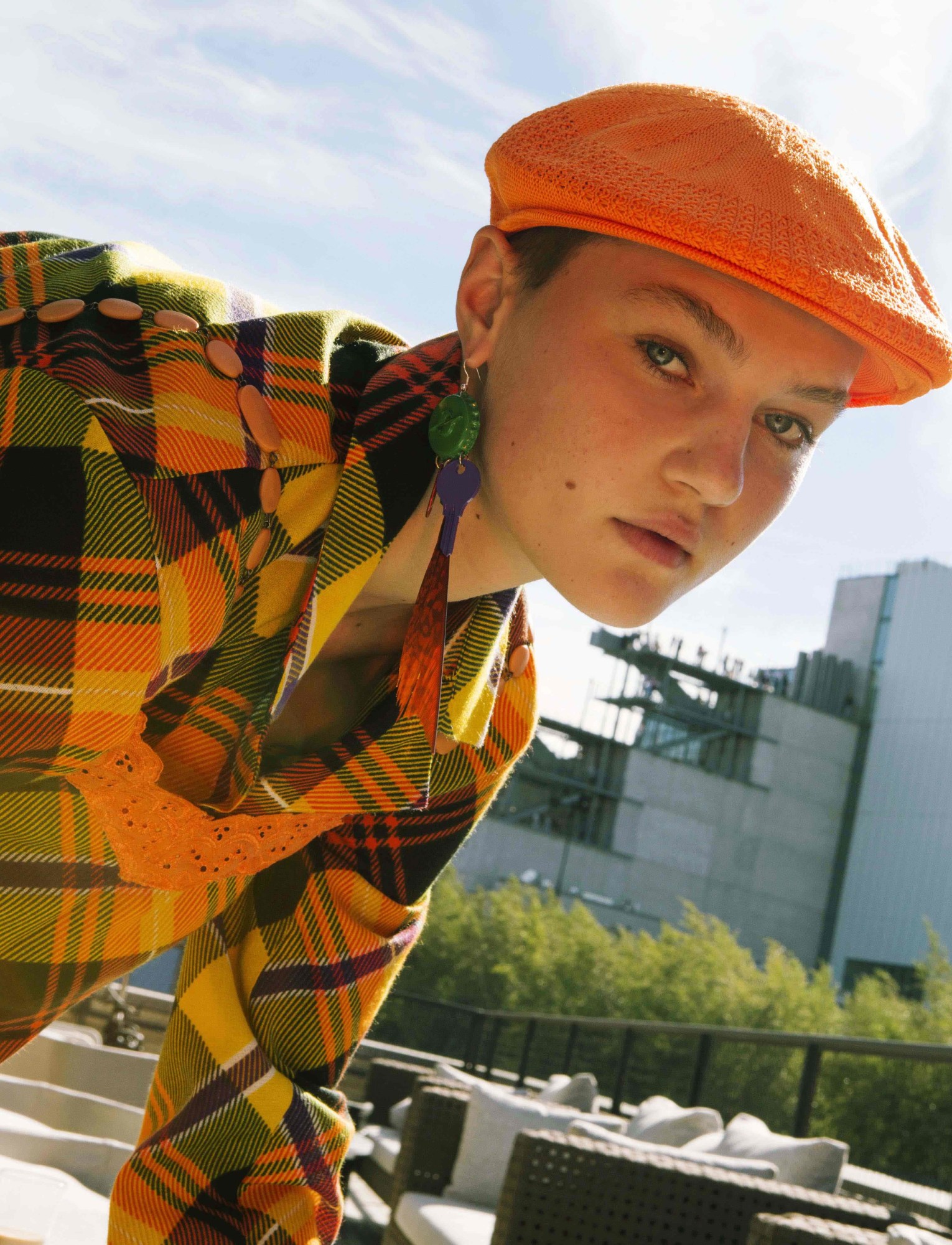 Uribe’s unconventional flapper kids marched out in fringed football jerseys, tank tops hemmed with billowing pleated trains, and gender-blending pajama combos of lacy floral nightgowns layered with pinstripe shirts. The designer also experimented for the first time with plaid. It showed up most memorably on a boxy, embellished tweed jacket worn with exposed silk boxer shorts, a long lace skirt, and jeans cinched with a rainbow skater belt — the look Uribe’s commenters deemed fitting for an upscale rave. The 90s also got a nod from the footwear. Bar a few models in worn-in sneakers, each look was paired with mesh Chinese slippers. Unlike the heavily embellished and very expensive white versions Balenciaga created for spring/summer 16, these looked like the real $2.99 Chinatown deal. More expensive accessories came courtesy of an ongoing jewelry collaboration with Chris Habana.