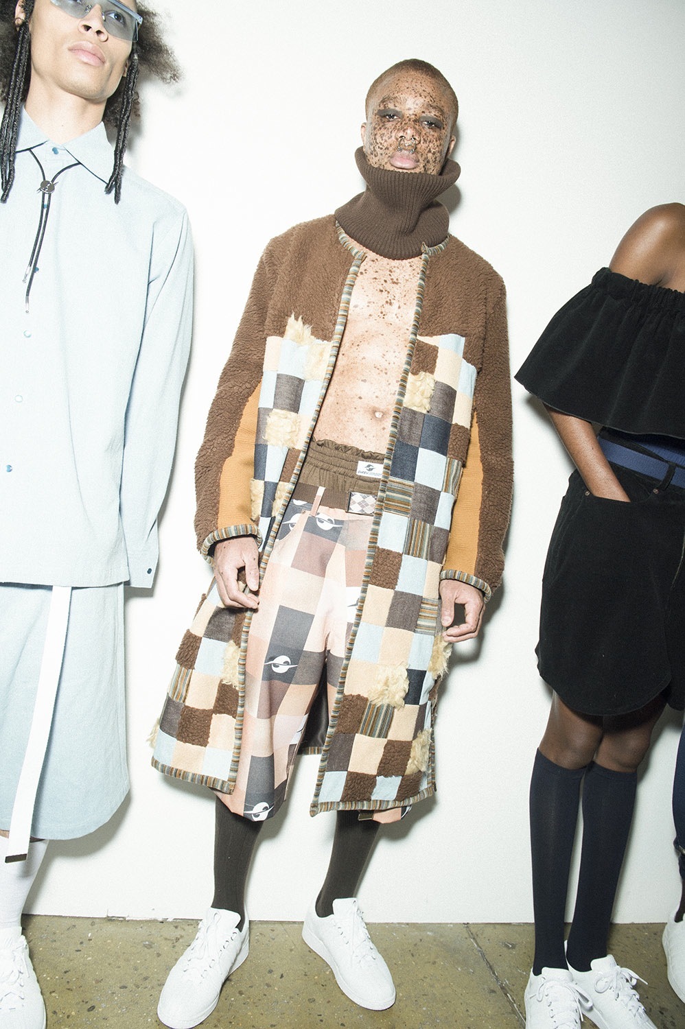 Of course, skin wasn’t merely the focus of Uribe’s designs. His pan-ethnic, gender queer, body-positive cast of NYC’s most uniquely compelling kids was out in full force yesterday (that proud pregnant model who closed last season again took the final trip down the runway, this time carrying her newborn baby). The tribe staged an extended dance party for its finale, and attendees snapped and cheered for their favorite runway looks. Fall/winter 16 showed that precision is possible, even when you’re leading a movement that celebrates everyone.