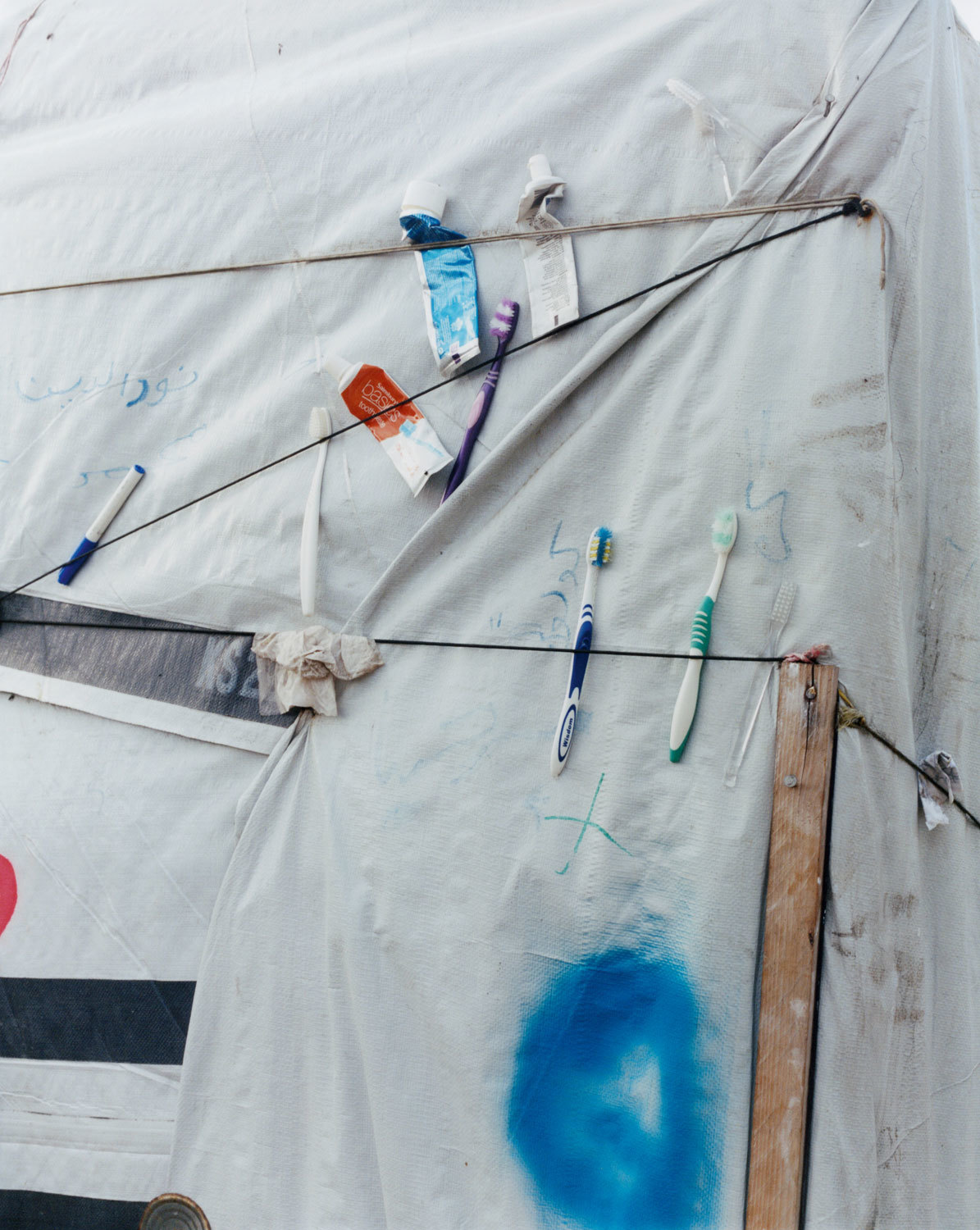 When I arrived I was shocked, everyone had told me that it was the dirtiest camp they had ever seen, and actually, it wasn’t. I’m not saying it was a paradise, but I felt there was something lacking in the reportage images — often desaturated, distant depictions of war-torn souls throwing stones and hurling abuse at police and each other. It all seemed very one sided. We certainly need those images, but I wanted to see things with my own eyes. There is a deep sadness to the place but there is also a positivity that is rarely shown. I saw people getting on with things with an incredible tenderness and splendor. Beauty for me is integral when describing human nature and I wanted to show that in some form — to see the person rather than the situation.