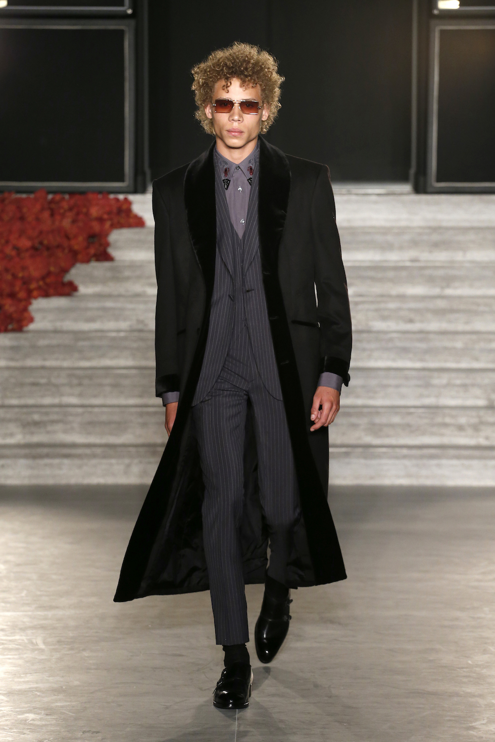 But in fashion elitism can be as important as attention, and O’Shea certainly ticked those two boxes. His show was inspired by the Dracula film from the early 90s, by Van Helsing and by rock stars. It materialized in foppish tailoring the way O’Shea likes it, like something straight out of the Pitti menswear fair in Florence where bearded tailoring fans peacock around in tight blazers, cropped trousers, and novelty ankle socks. But there was also something for the rappers, or at least the nouveau riche Russian business moguls who’ve adopted their former signature swag: how about a floor-length chinchilla coat, as modeled by O’Shea himself when he came out for his big bow? It wasn’t just a display of power (it takes something like six chinchillas to get one useable pelt), but of the fact that fashion now is a free-for-all where you can do whatever you want as long as you have the backing, even if it goes against the fragile legacy of a heritage brand.