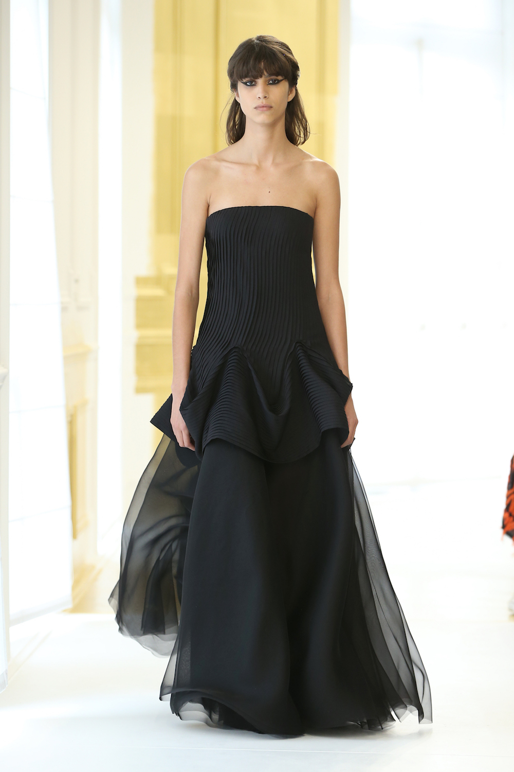 The total opposite was exercised at Dior where the understated but incredibly good-looking Lucie Meier and Serge Ruffieux put on the kind of couture show that made you want to sit in those Dior salons for days. They have been substitute designers since Raf Simons left the house, and if reports are true they’ll soon have a new creative director above them in the shape of Valentino’s Maria Grazia Chiuri. Rumor has it the announcement will be made after her couture show for that house on Wednesday evening, and judging by the situation after the Dior show — “no interviews, greetings only” — something is definitely up in the hallowed halls of Avenue Montaigne. Meier and Ruffieux could of course decide to leave Dior amidst the changes, and after this couture show any old house in Paris should be so lucky to have them. Contrary to their cruise show in June, which flexed a more experimental muscle, this was the epitome of beautiful, elegant, pared-down Dior. Some would say old-fashioned, but there’s room for that in haute couture.
