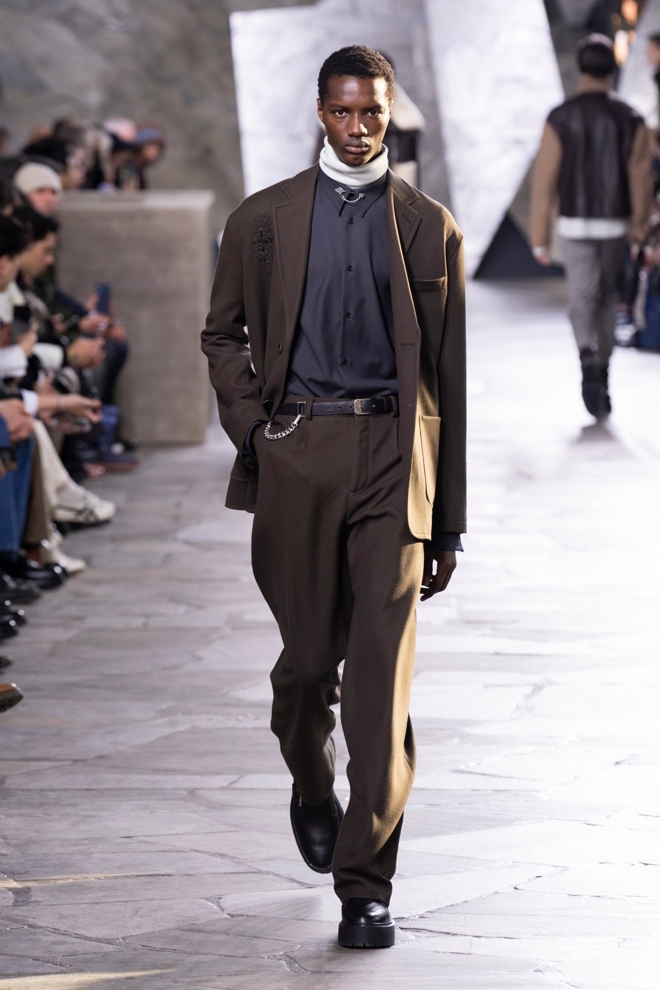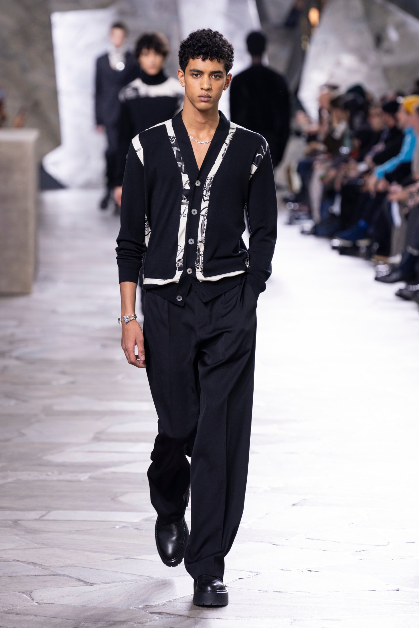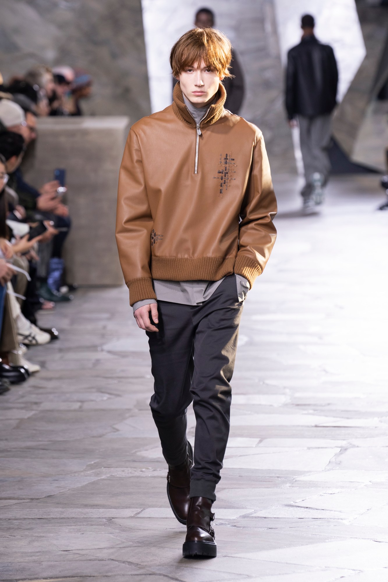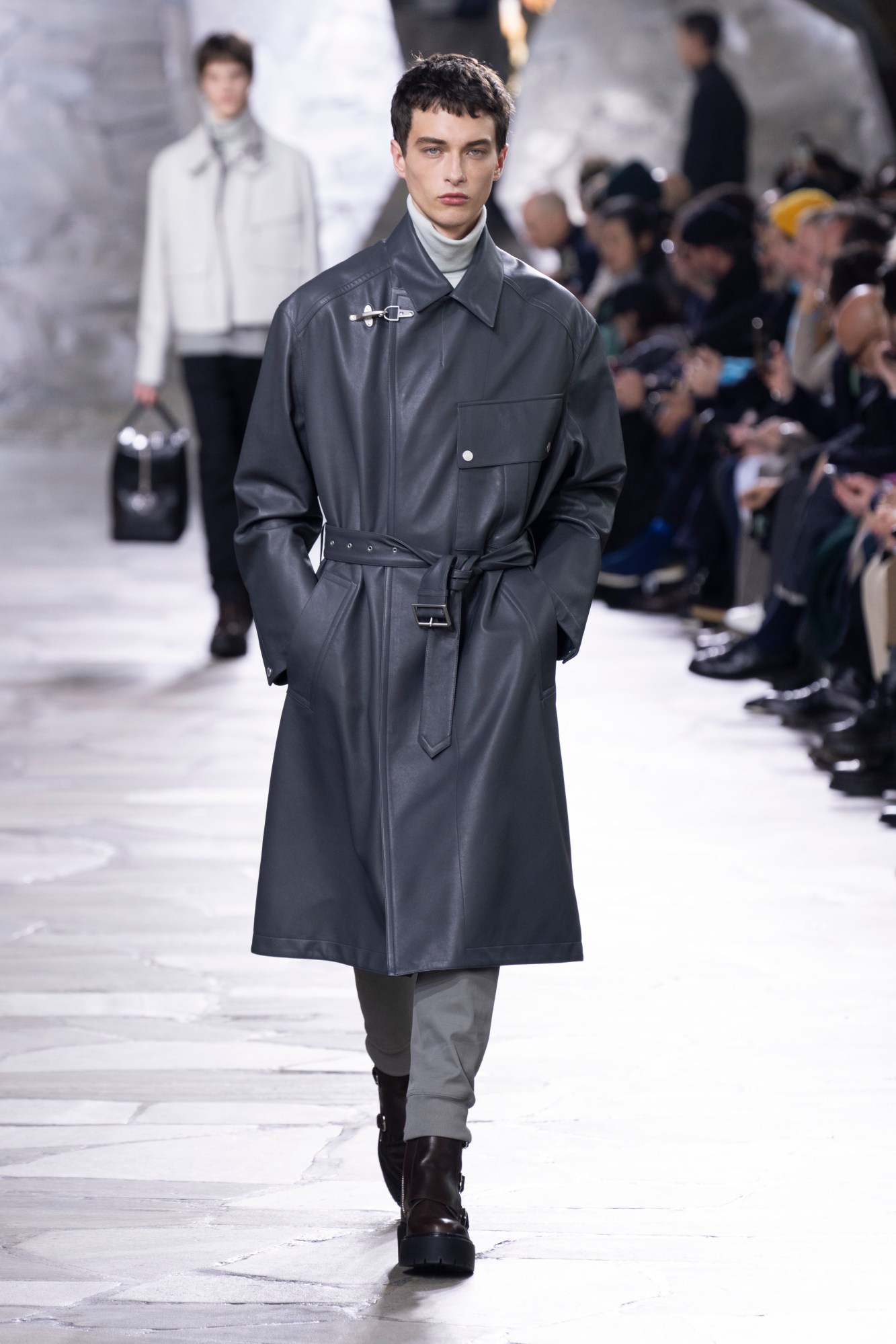 Hermès does not do fad diets or make New Year’s resolutions; it just enjoys life for its simple and delicious pleasures. After all, what is there to change about a house that strives for perfection in everything it produces? It’s a testament to the French house’s menswear designer Véronique Nichanian’s skills that she is one of fashion’s longest-serving creative directors, and yet still finds a way to make menswear feel engaging without relying on gimmicks; totally timeless without ever being boring. Put simply, her AW23 collection was all about intricately crafted, highly desirable clothes, all of which were layered in a way that was both boyish yet grown-up; playful yet timeless. From a practical point of view, the layers of turtlenecks under shirts and jackets — sometimes three or four layers of clothing in one look — resonated with an audience who was experiencing the biting frost of sub-zero temperatures in Paris.