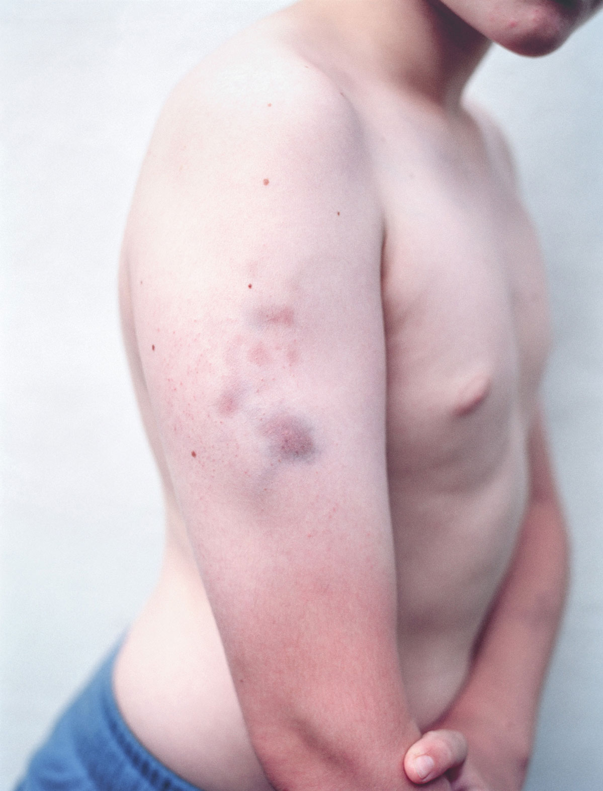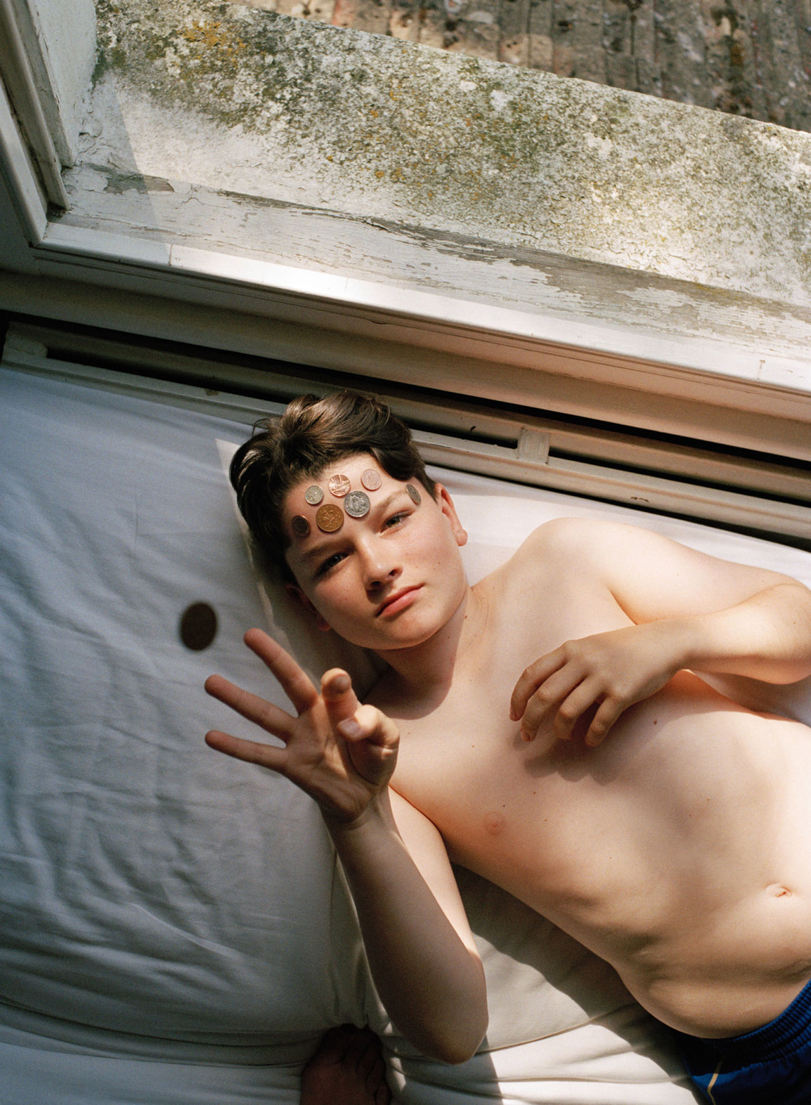 The London-based photographer spent a year photographing her brother in all his preteen glory: sporting bruised biceps, pulling slingshots, slumped over the dining table after being banned from X-Box. “It kind of just happened,” Hollie says of the project. She started taking photos of her family on holiday with a zine in mind, but her usual muse — her little sister — wasn’t around. So she turned her lens to Max. “Throughout those two weeks I saw him in a completely new light,” Hollie says. “He was in that delicate limbo balanced between being a child and a young adult and I just found it fascinating, and wanted to shoot every moment.”