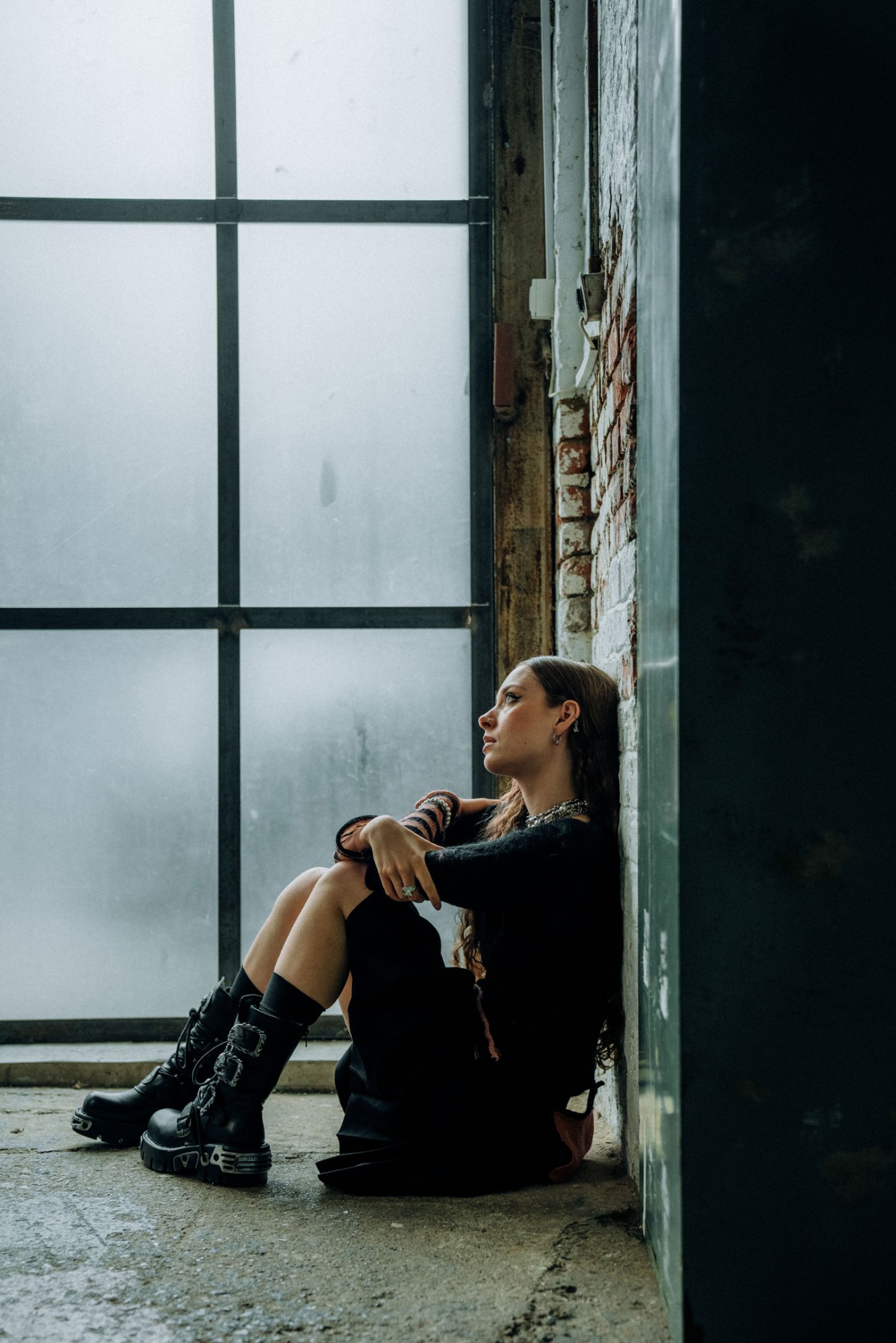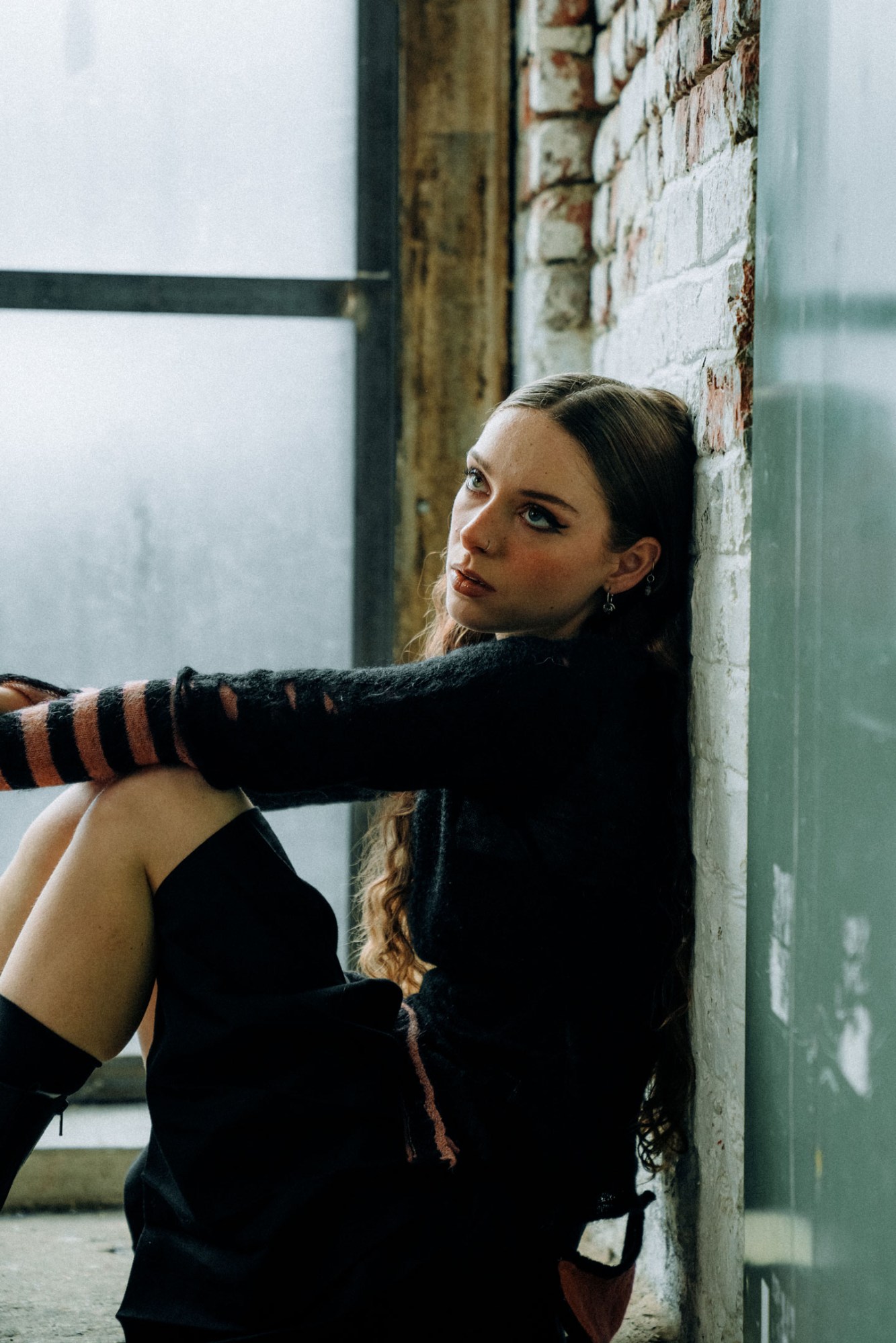 Holly and her team shot the accompanying music video in a “definitely haunted” abandoned war hospice in the Czech Republic. In it, we join our protagonist as she questions her reality, tries to escape herself and performs on top of a smashed-up car that stands vertically in the middle of a room. “It was about 4am and I was sitting on top of this car with broken glass all around me, just trying to balance,” she says. “It was worth it though.”