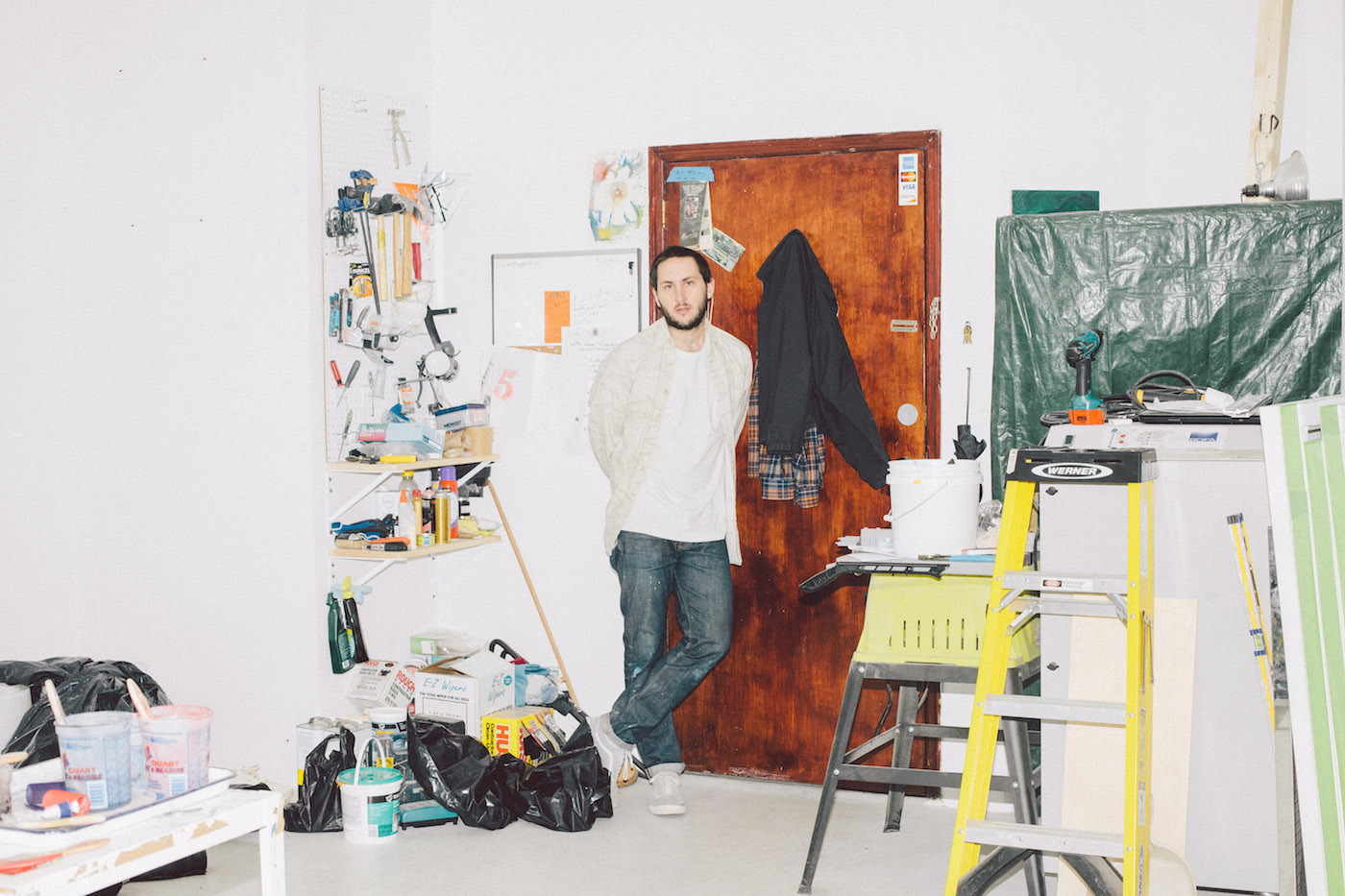 “My studio’s usually pristine,” said Dean Levin when we met at his white cube of a Tribeca studio. The only furniture was a pair of tables and chairs, a couple of bookshelves, and a large piece of machinery (a CNC machine for cutting materials, as he later explained). Apart from some clutter near the door, it was pristine almost to the point of being clinical. The only rogue elements were a bottle of Pepto Bismol and a bottle of Goya hot sauce, sitting in a funny little diptych on a shelf. It was not the space you would imagine a so-called “bro artist” occupying.