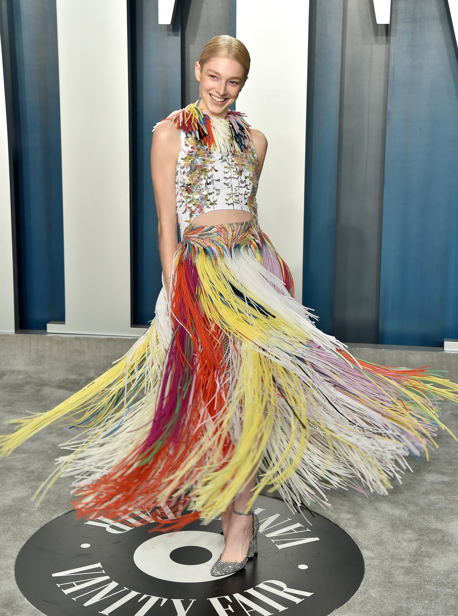 Hunter’s style is, in a word, euphoric. Whether it’s a Givenchy set or a pair of Rick boots, she wears her wardrobe with a sense of joy that’s palpable — and infectious. Here, at Vanity Fair’s 2020 Oscars party, she takes a twirl in a colourful fringed gown by Givenchy.