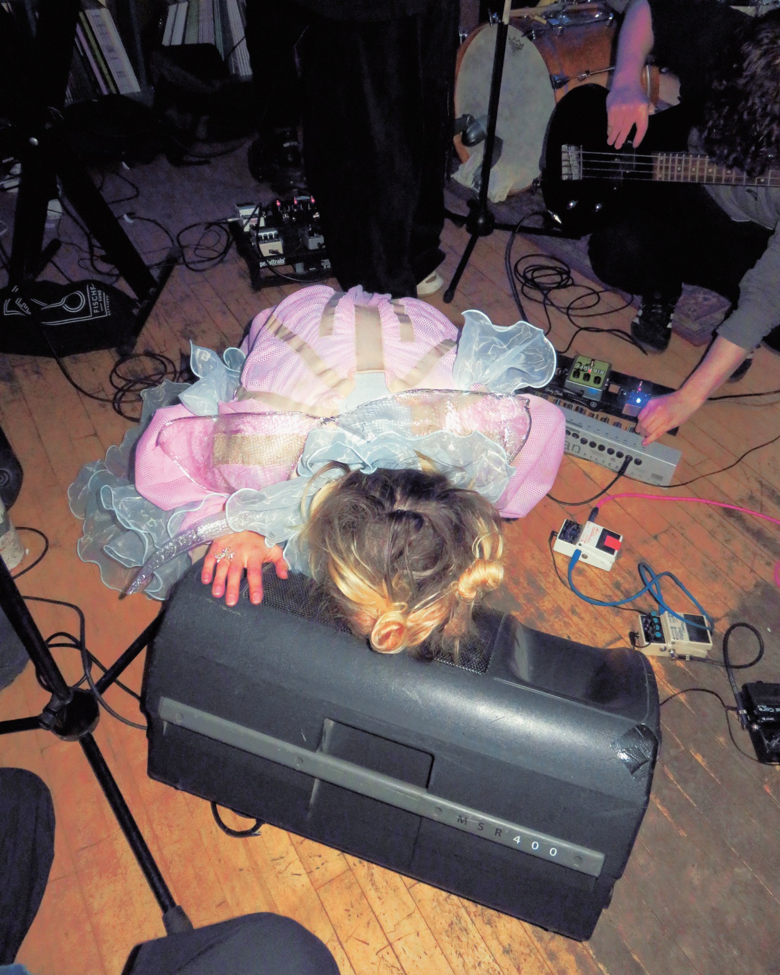 More than 80 acts play “officially” from 7pm each night, but there’s at least the same amount of shows happening outside main venues throughout the day. The festival shares an extra events schedule, which features gigs at record shops and breweries, but there’s also the off off-schedule – where the cool Icelandic kids are at. They’re gigs, documentary screenings and parties which are a little harder to find because they aren’t clearly advertised. You’ll instead discover them through talking with locals or randomly stumbling upon them walking down the street. Word-of-mouth was how I found out about Amor Vincit Omnia’s show, a Grimesy electro-pop project by two of the blondes I met at Bingo. Playing in the foyer of arthouse cinema Bíóparadis, the crowd of 20-somethings were dressed up in bathing robes, night gowns and other sleepover props, seemingly just for fun. One gig-goer was dressed up as a nighttable, complete with condoms, a Tolkien book and Strepsils.