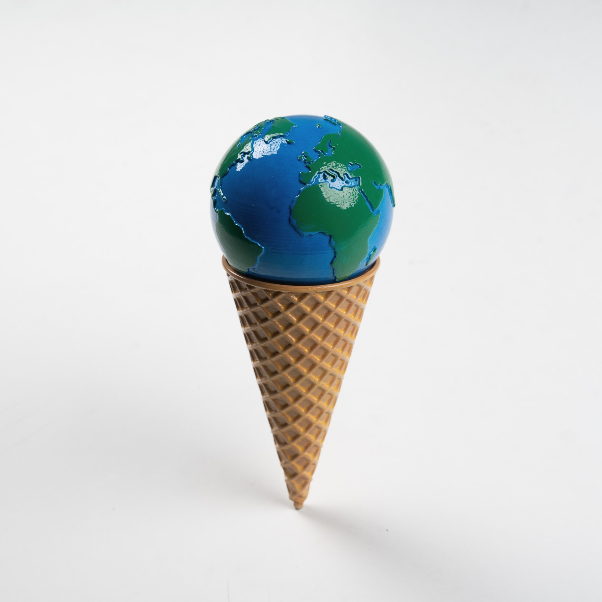 The artist recently wrapped up Hot Stuff, an exhibition at New York’s Nino Mier Gallery that showcased a selection of self-portraits, a couple of videos, and even some whimsical sculptures she 3D-printed in plastic — her first foray into the medium. “My sculptures and photographs are connected by an interest in objects,” Iiu explains. Through incorporating items from her images she considers “recognisable in shape” and bringing them to life on a larger scale, she further combines contrasting elements — a hotdog bun holding a tube of lipstick, or an ice cream cone topped with a small globe. Each sculpture challenges our expectations by negating the functional purpose of the object, acting as a clever critique of consumer culture.