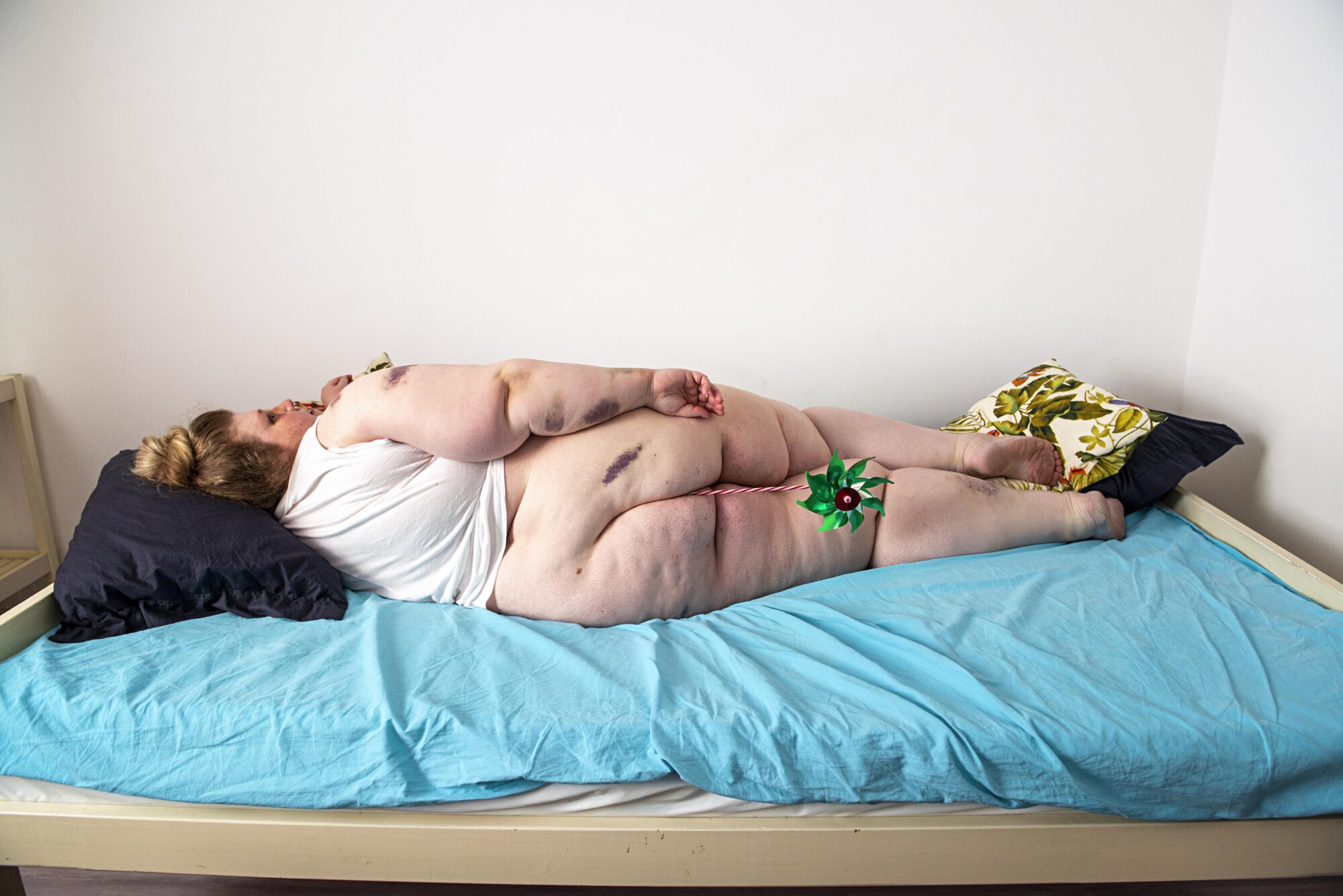 Of course, the photographer is far from dull — as demonstrated by her strange, suggestive and semi-ironic style of image-making. She’s known for finding absurdity in the quotidian, posing amid scenes she arranges at home or in her parent’s house, generally between noon and 2pm to catch the best sunlight. More often than not, she’s naked and sporting an absent stare, adorned with ordinary props like bananas, rubber duckies and heart-shaped balloons. “I try to be the same person in public and in private, otherwise everything would probably be too heavy,” Iiu says about her willingness to be vulnerable. “It’s not difficult for me to be in front of the camera. I haven’t censored my photos; I don’t think that deeply about photography or art.”