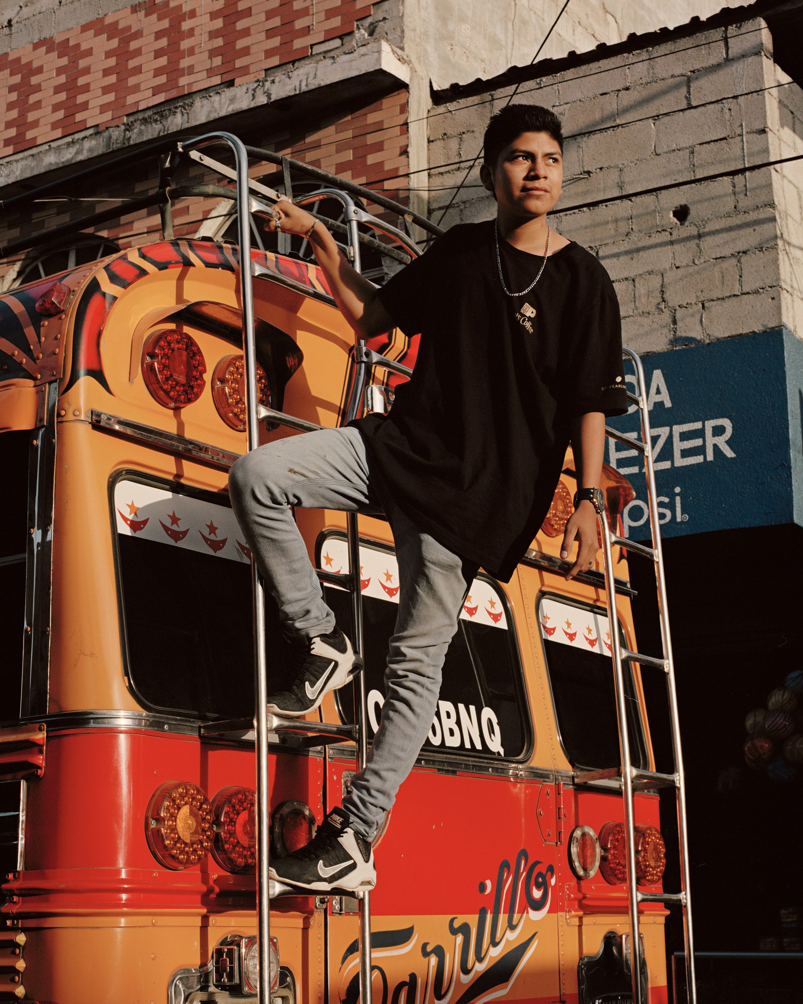 “There’s this huge conversation about how Indigenous people are losing their traditions but they’re just globalising,” he adds. “These kids have TikTok, one of the girls has 150,000 followers. They’re so swaggy and stylish because they have smartphones.” Just like teens all over the world, they’re figuring out their identities: looking to celebrities and fashion sites for inspiration, taking advantage of Guatemala’s thriving second-hand clothes industry while celebrating their Indigenous heritage.