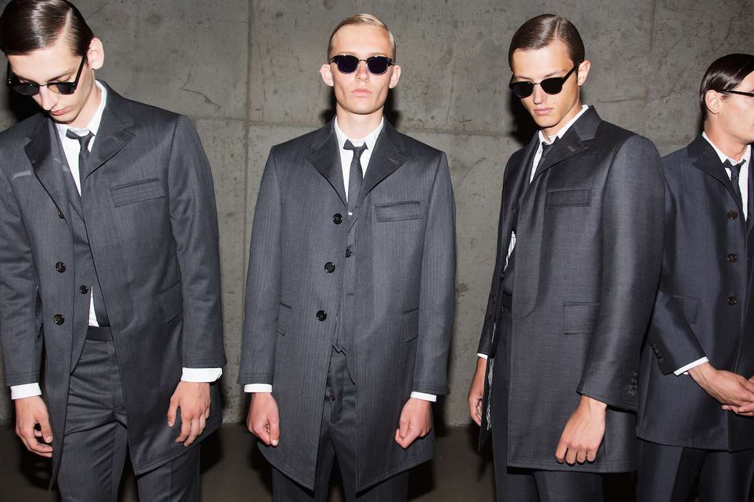 Thom Browne has made his career in fashion out of one outfit: the suit. Or rather he’s made a career out of reimagining that one outfit over and over and over again. It sounds boring, but never is, especially when it comes to his dark, cinematic shows.