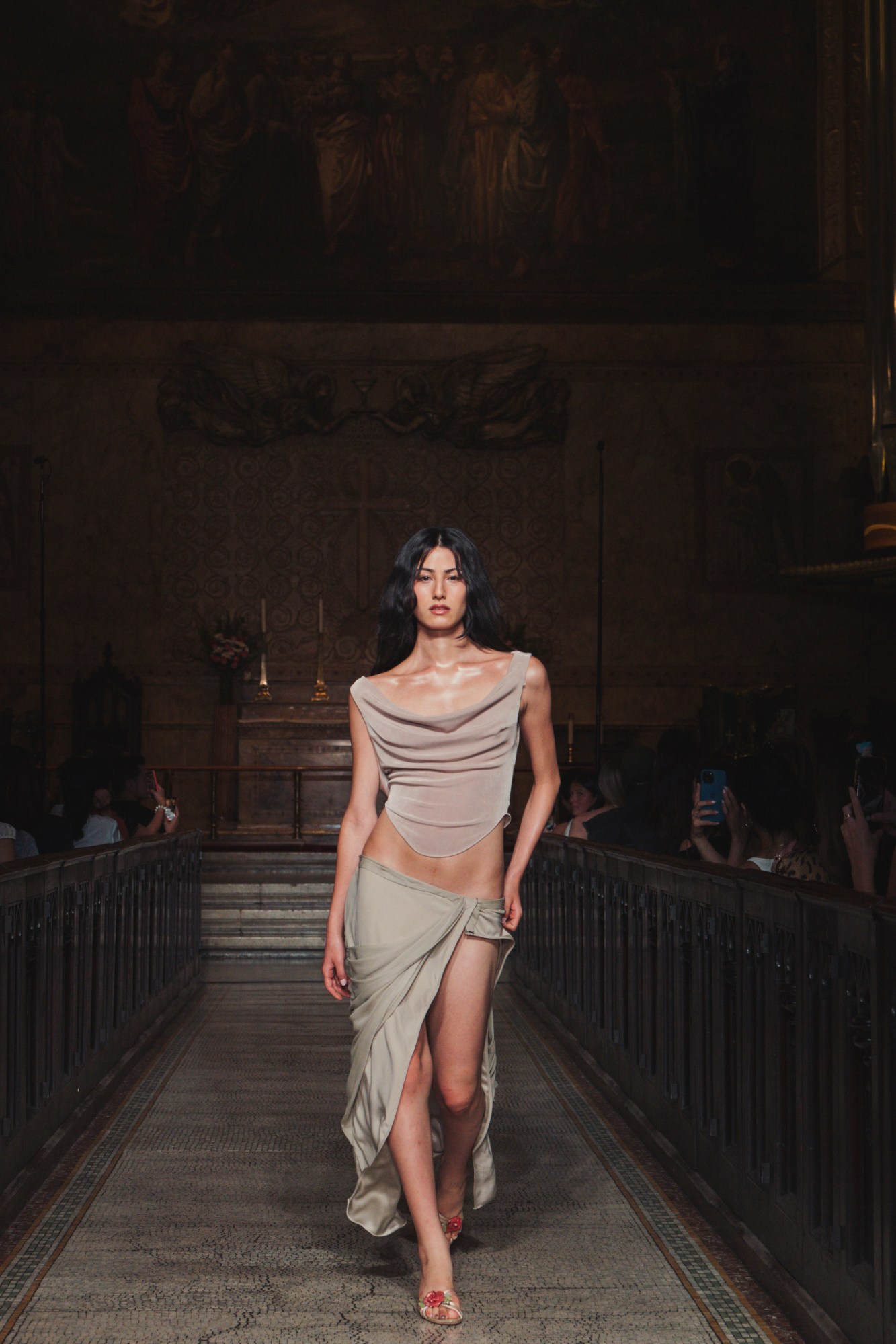 The fashion show, however, serves another, secondary function, which is to signal a brand’s prestige. A slot in the calendar is an industry stamp of approval, an invitation into an exclusive club; it indicates a label is a cut above the rest. And that, in part, is the reason why Marcelo debuted Mirror Palais at NYFW last September. “I wanted to show the world that [Mirror Palais] is a designer brand,” he says. Paloma Wool’s Paloma Lanna corroborates: “I needed to elevate what we were doing by making the project tangible in an in-person experience, too. It was a very important moment for us; we were no longer that ‘Instagram brand’.”