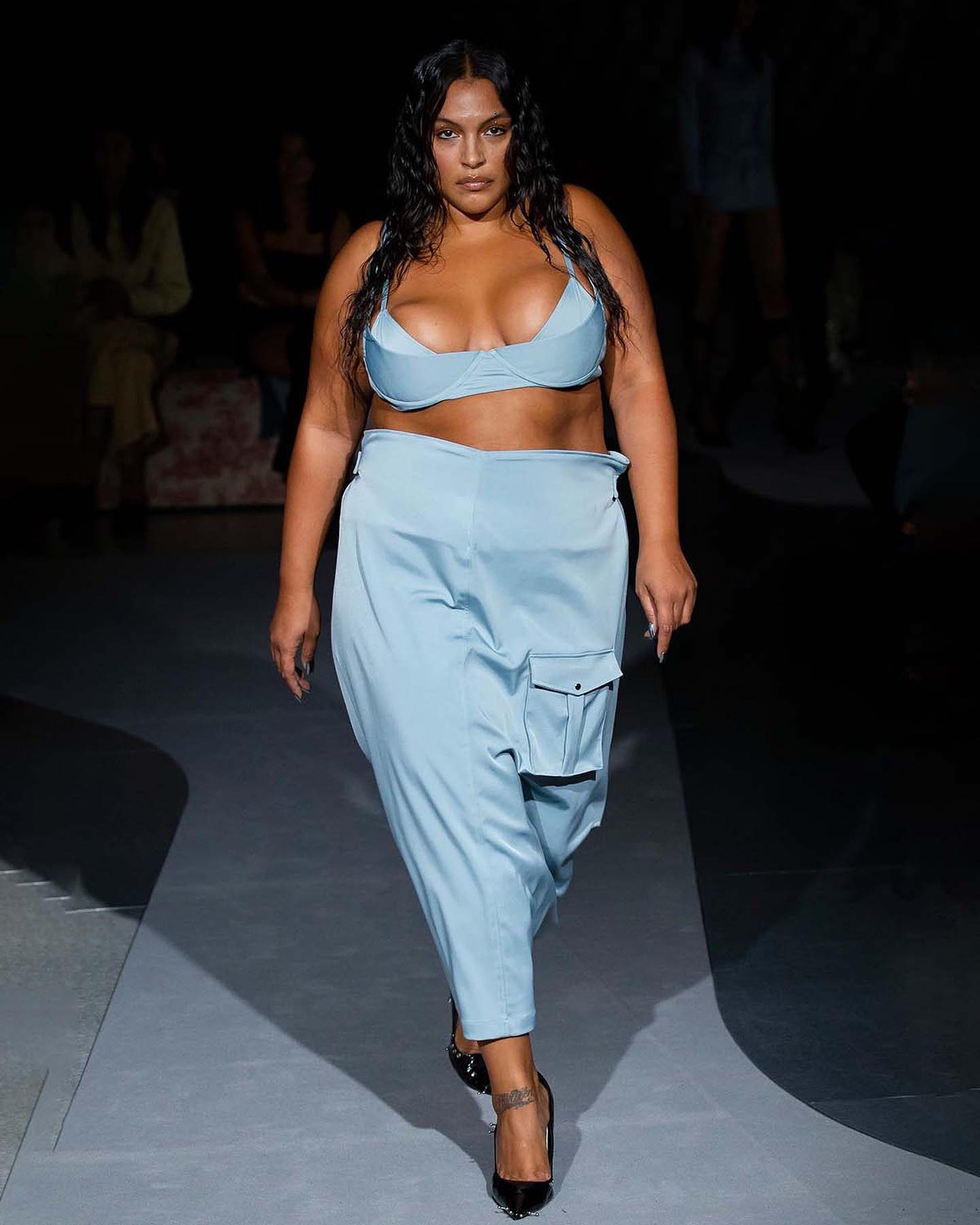 The last year has seen several similar Instagram-based brands make the leap from the grid to the catwalk. Last March, French label Maison Cléo debuted its SS22 made-to-order offering at Paris Fashion Week. The next season, Franco-American brand Miaou followed suit, inviting Paloma Elsesser and Richie Shazam to walk its SS23 show. Last week, Barcelona’s Paloma Wool staged its second PFW outing in collaboration with artist Carlotta Guerrero: a runway performance that brought the backstage to the runway, physically embodying the label’s mantra: “Paloma wool is a project around the act of getting dressed.”