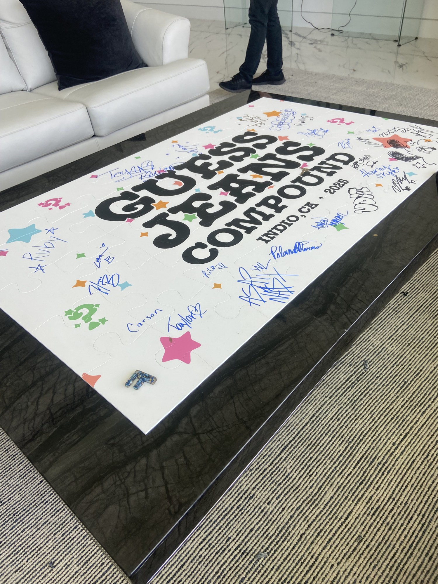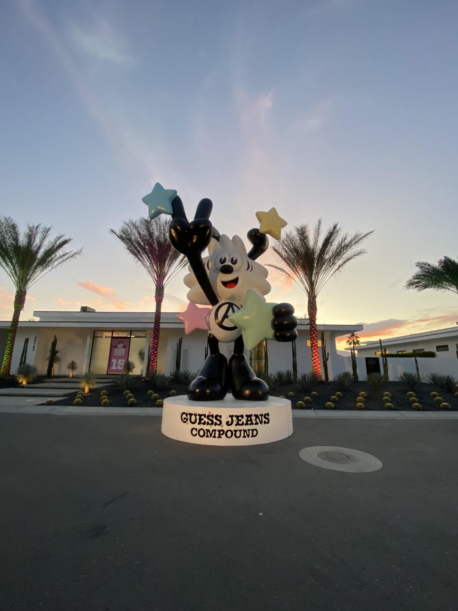 I met Nicolai Marciano, current chief business development officer for Guess Inc and son of Guess co-founder Paul Marciano, in his house on the compound. Nicolai, who’s in his late 20s, has a California type of confidence, at ease with the past yet completely forward thinking. He also possesses a well-honed ability to spot new talent—he’s led Guess Inc in collaboration with everyone from A$AP Rocky to the avant garde brand All-In. After getting over the novelty of meeting a fellow Nicolai, we chat about the future of Guess Jeans which he sees as totally tethered to sustainability, putting it succinctly: “Innovation forty years ago was about making denim fashionable, innovation today is about making denim sustainable. We do all this work already, let’s just create this as a baseline. Now more than ever water is important. Solving the water issue for denim is the biggest challenge to the industry.” The UN estimates it takes around 3,781 litres of water to make a single pair of jeans. Soberly he tells me, “For me, sustainability doesn’t matter unless there’s a high impact. To make 100 pieces and be like, this was made out of recycled clothing…it’s a nice gesture but it’s not doing much. If we can affect thousands and millions of units and have a real impact? I have the opportunity to do that with Guess Jeans and that’s what we’re doing.” Out in the desert, the presence—or lack—of water is felt acutely. At Coachella, jorts abound. Imagine if they were all sustainably made? I’d estimate nearly 1 zillions of water would be saved (I studied writing in school, ok.)