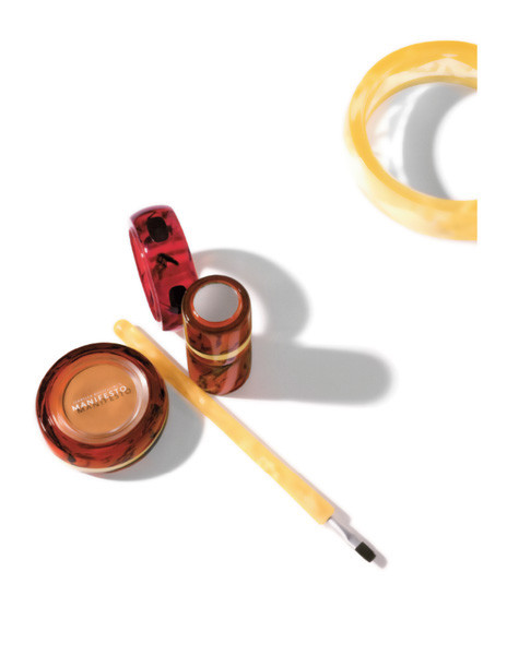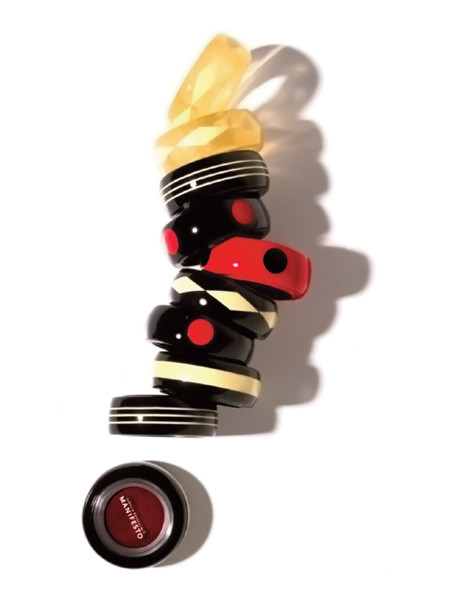 The jars also came with colourful resin bands that could be used to organise products or worn as rings and bracelets. Her lipsticks were small because she noticed women rarely finished a whole tube. They also had a small mirror on the bottom to save you having to carry one or seek out a convenient reflection.