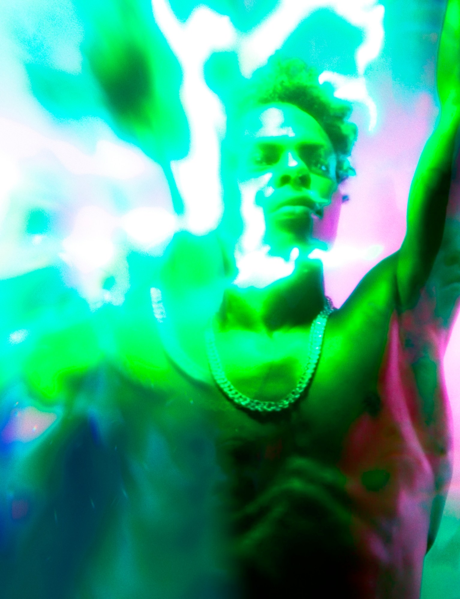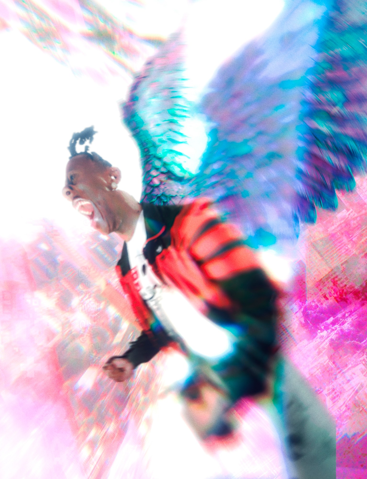 Speed is here to join the roster of global superstars (Gucci Mane, Selena Gomez, and Travis Scott, among others) who have ceded full creative license to Korine so he can use their likeness in however he sees fit in his photography and films—much like Scott in Aggro Dr1ft, the experimental infrared thriller that premiered at 2023’s Venice International Film Festival.