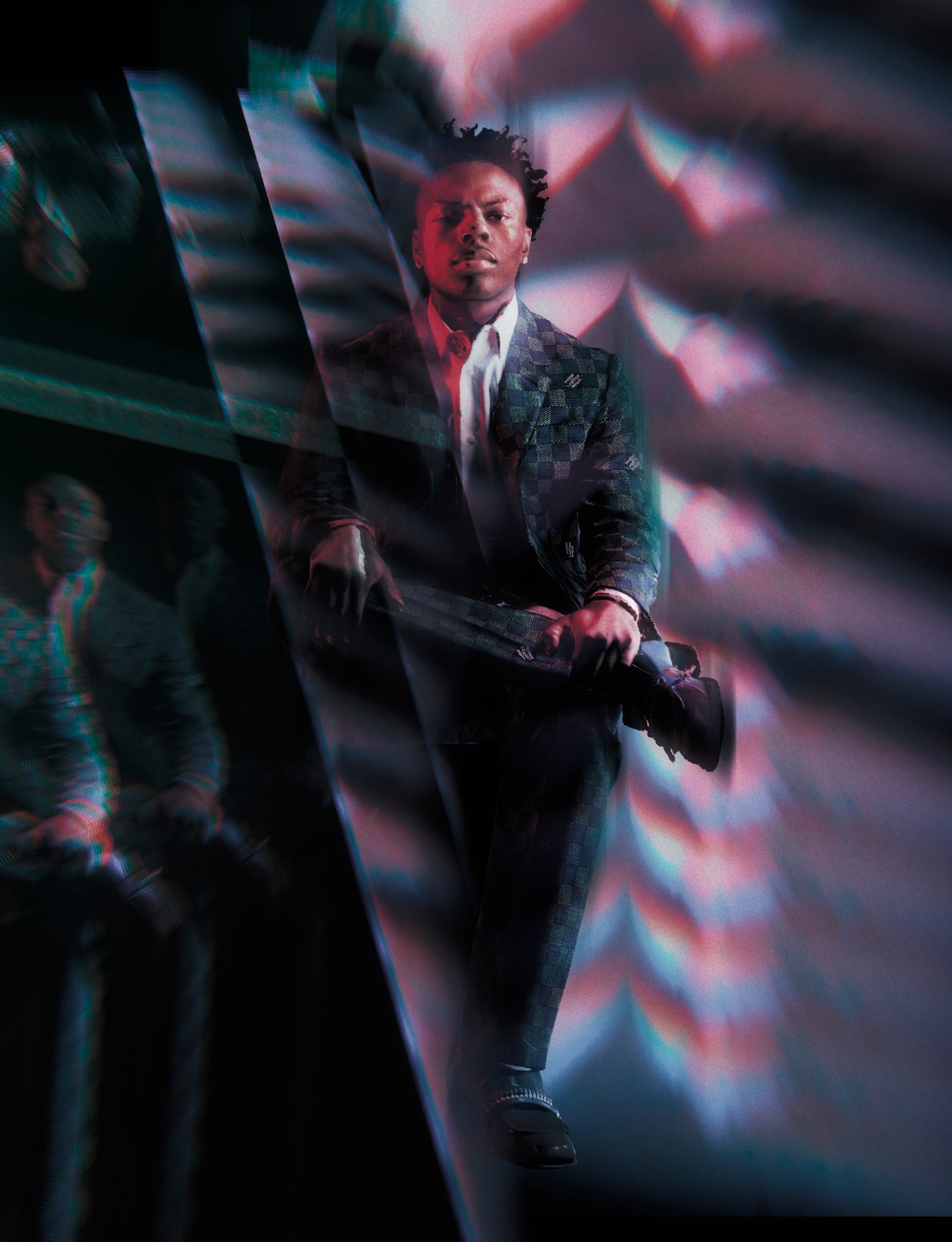 When asked if he’d like his hair touched up for the shoot, he asks to see the makeup artist’s Instagram account to review her portfolio. “I’m just looking for a Black person, I’m not gonna lie,” he jokes after scrolling through the digital feed for longer than you’d expect. Satisfied, he sits down in the chair and pulls out his mobile where he has a video from one of his streams ready to show how he’d like his hair trimmed. “Just straight across,” he directs.
