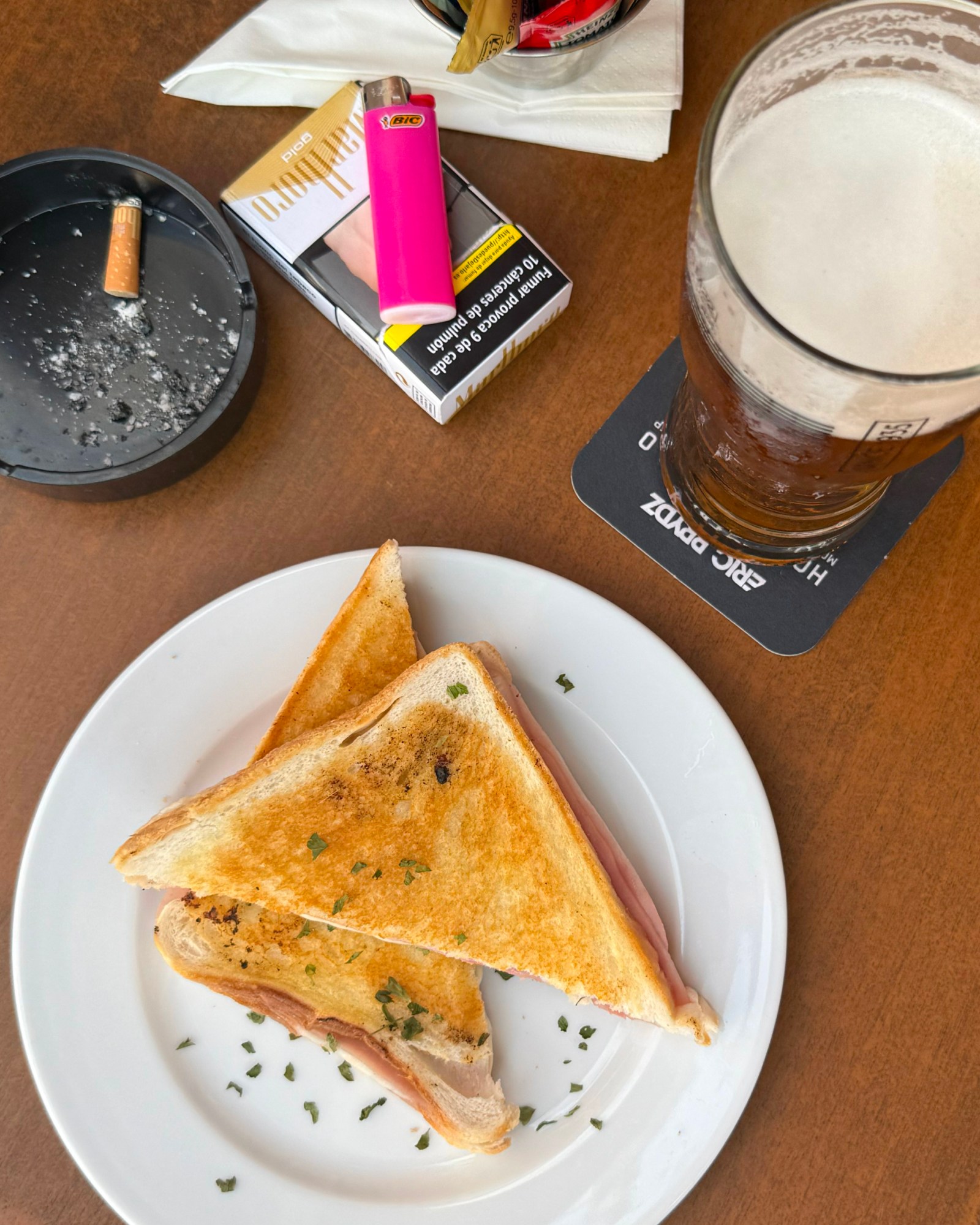 When it comes to dining, I’m famously not a foodie. But who cares about food when it’s over 30° (that’s 86°, America). In true Brits-abroad style, I stick to a strict diet of ham and cheese toasties with a pint—occasionally with a Fanta Lemon topper! Gourmet.