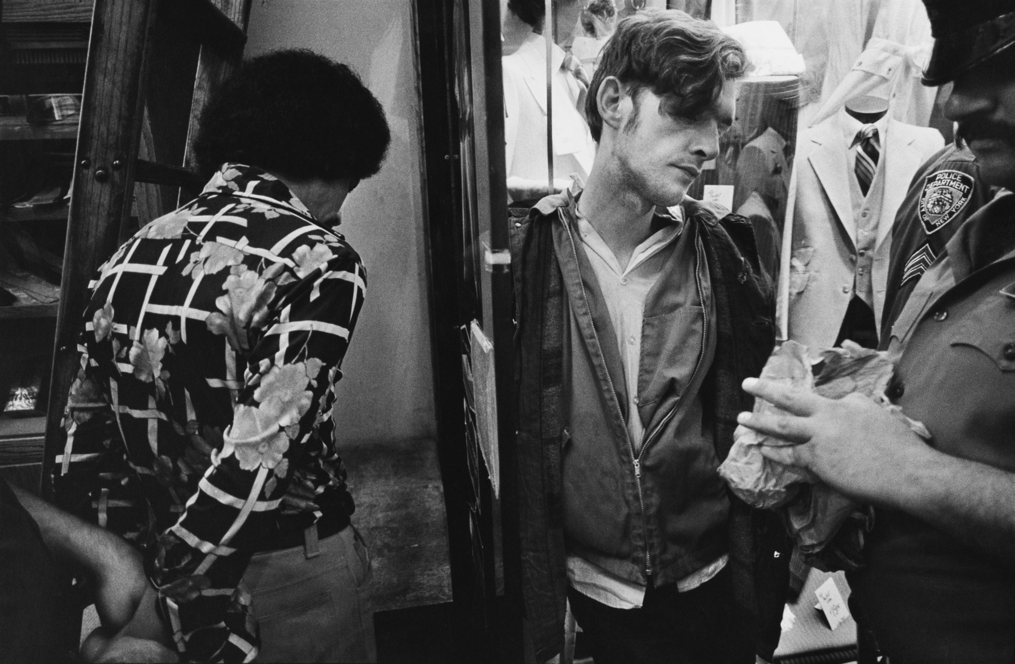 Offering a complicated albeit sympathetic portrait of NYPD, Jill embraces the “good guys vs. bad guys” paradigm that runs counter to the photographic evidence. The police are frequently seen treating white perpetrators with good humour and ease and sharing a laugh in the back of a cop car or at the station. Black and Latino perps, however, are seen being pushed against the wall, dragged down the stairs and slammed to the floor.