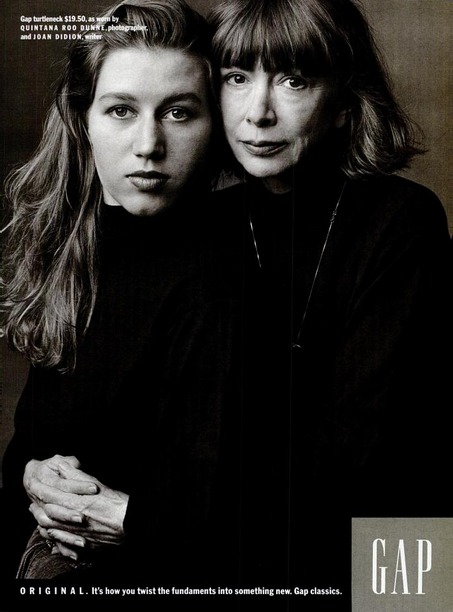 Céline was not the first time Joan Didion had starred in a fashion campaign. In 1989, she posed with her then 23-year-old daughter, Quintana. It was shot by Annie Leibovitz and, in it, the mother and daughter wear matching black turtlenecks as part of GAP’s ‘Individuals of Style’ campaign. It later appeared in a 2007 exhibit at the National Portrait Gallery. Sadly, Quintana passed away in 2005, aged 39. In Blue Nights, Didion’s deeply moving 2011 memoir about losing her daughter, she writes, “I can now afford to think about her. I no longer cry when I hear her name. I no longer imagine the transporter being called to take her to the morgue after we left the ICU. Yet I still need her with me”.